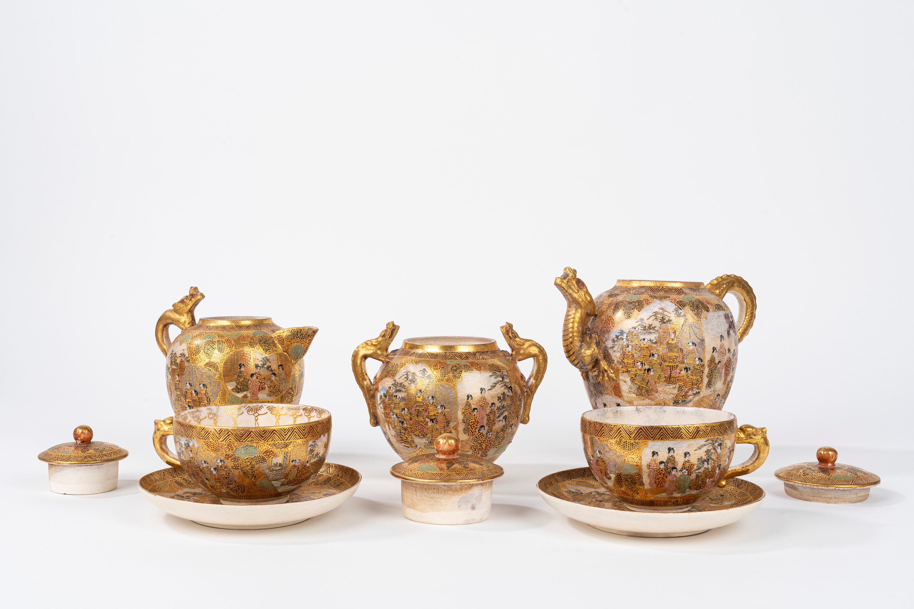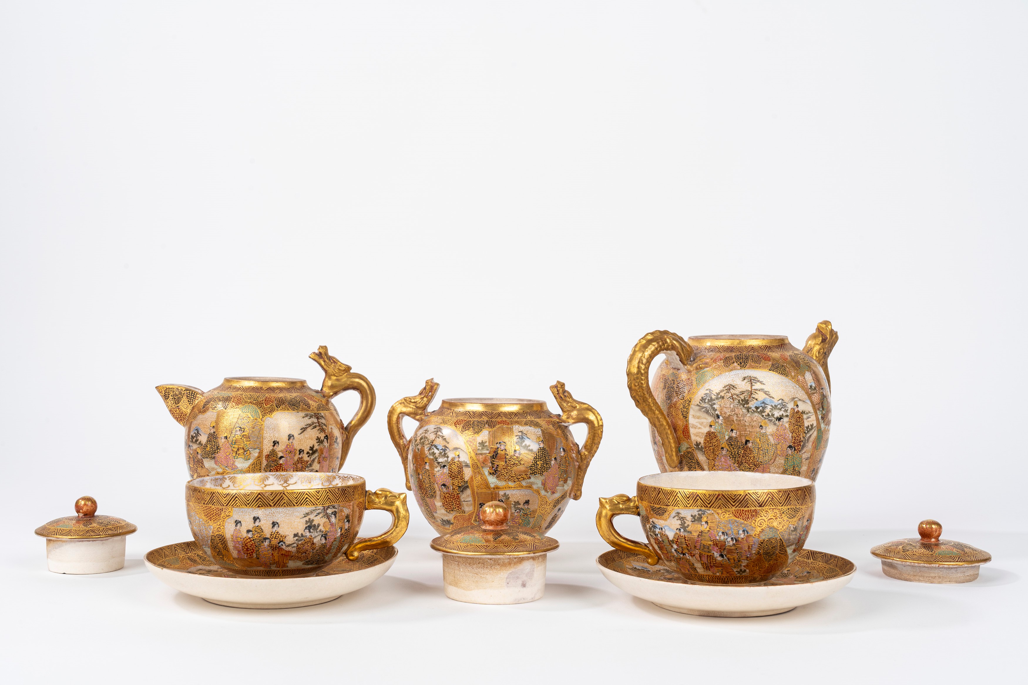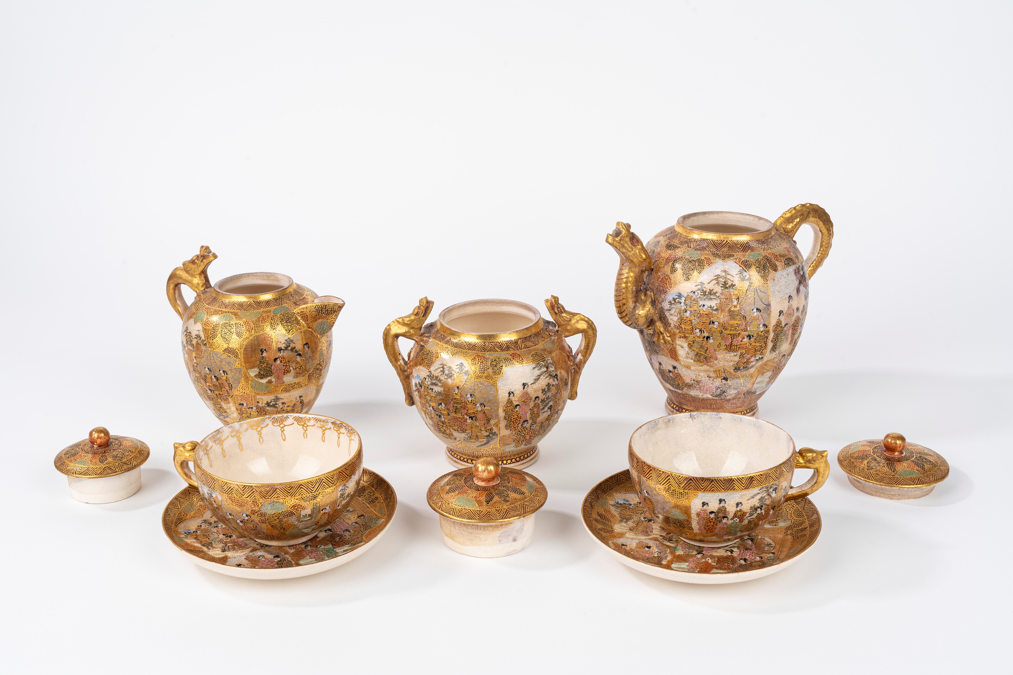 composto da due tazzine con piattino, teiera, lattiera e zuccheriera