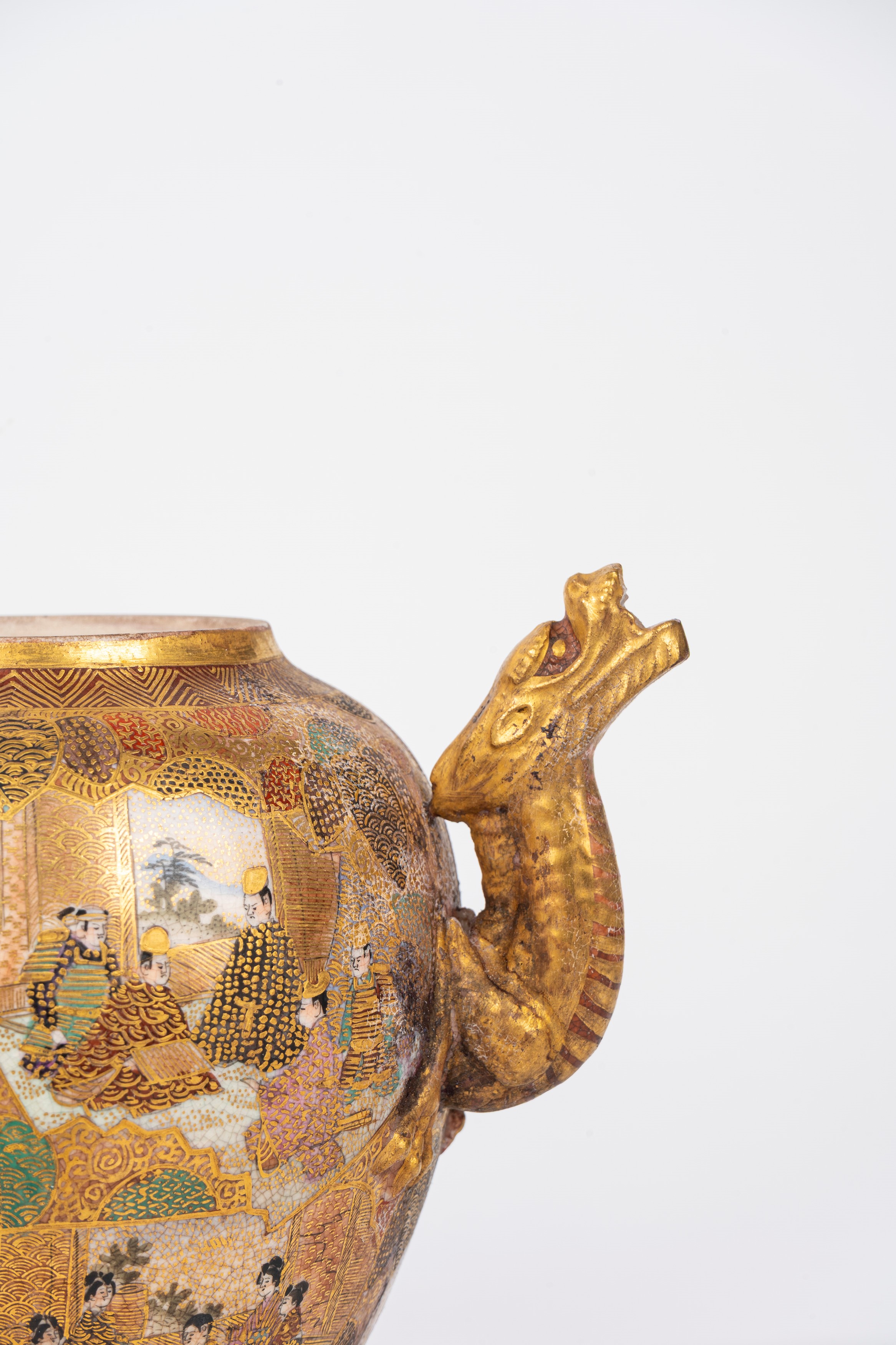 anse e beccuccio a forma di draghi, dipinte sul corpo con scene di corte