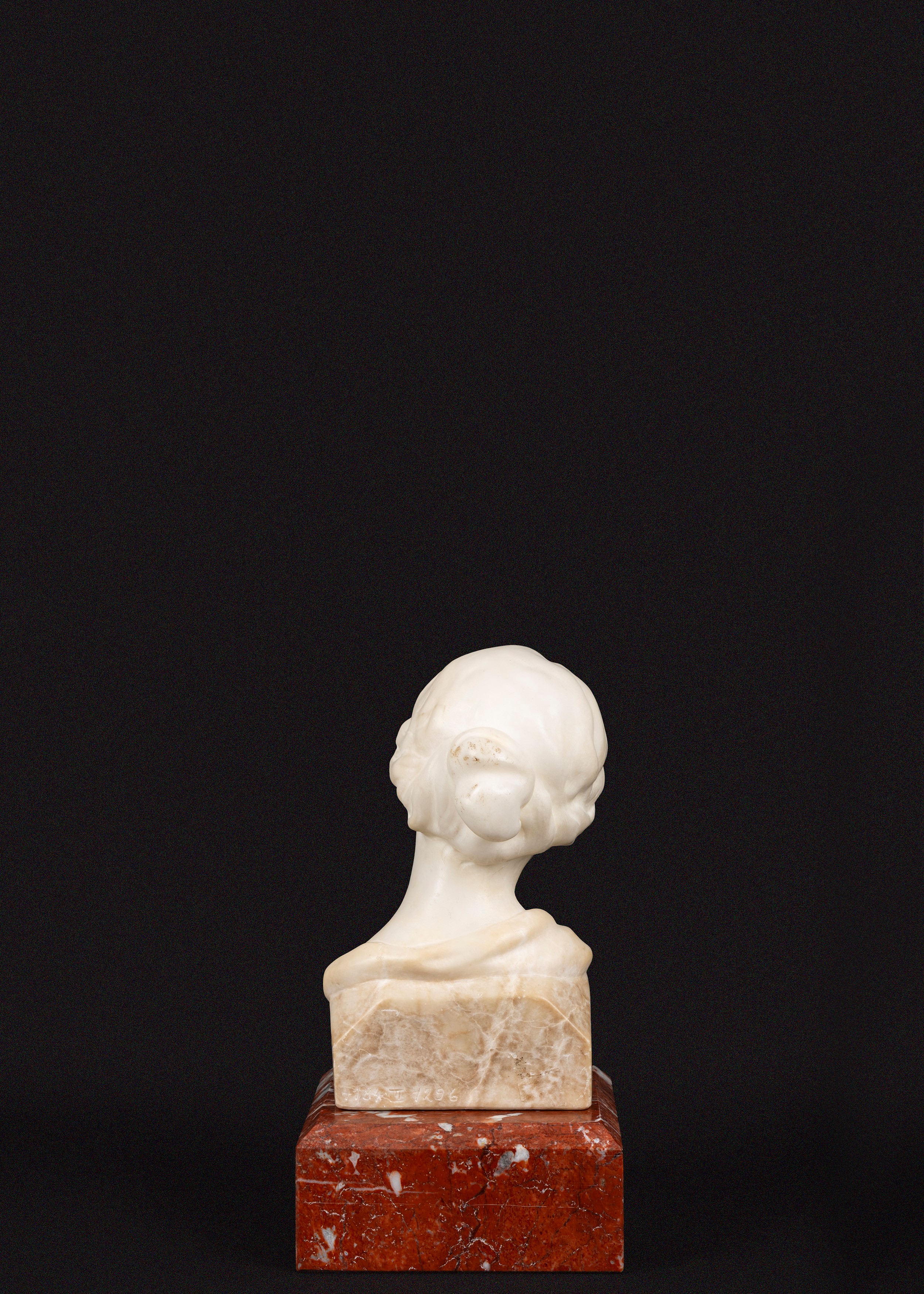 su base in marmo rosso non pertinente (cm 6,5 x 13,5 x 13,5)