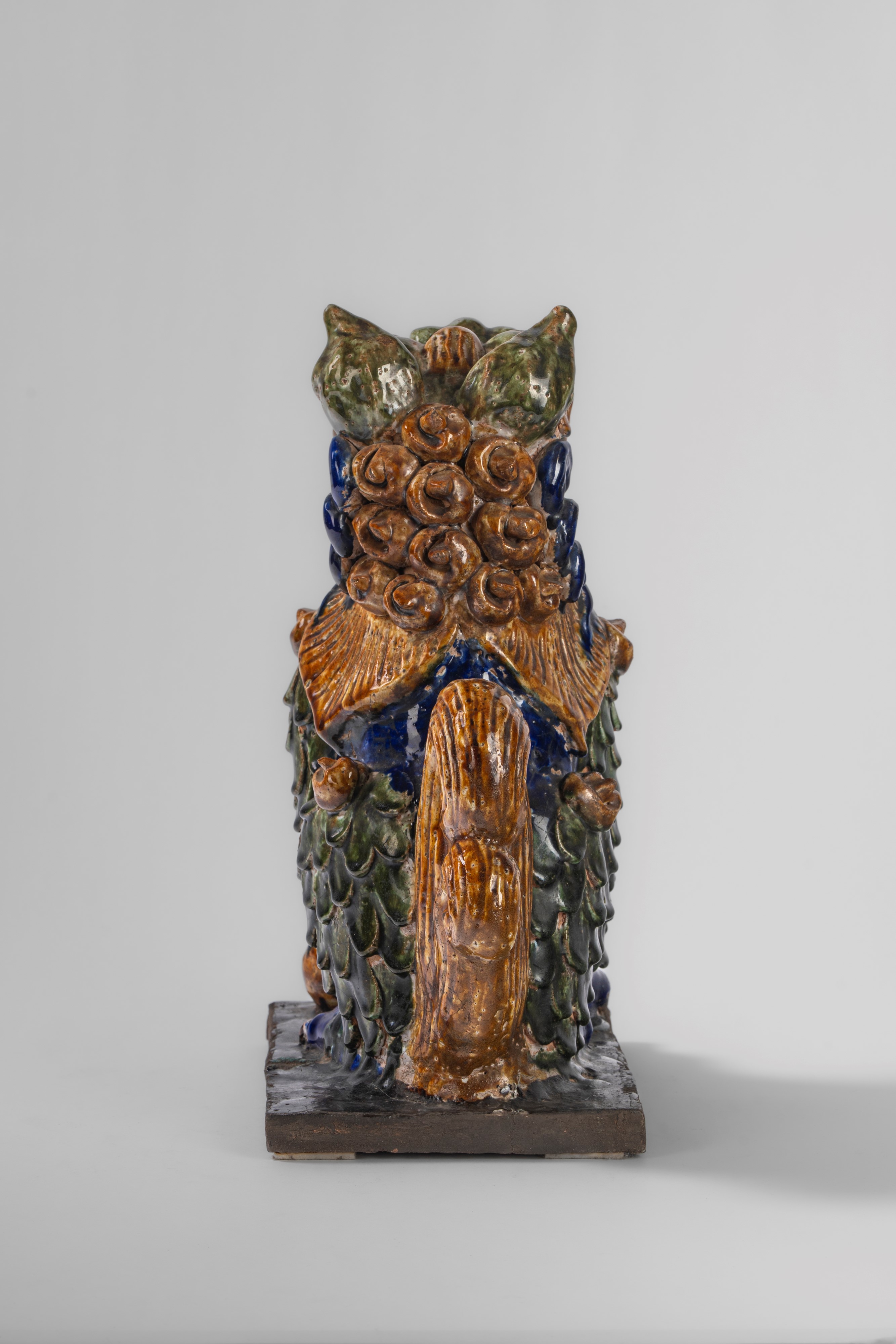 Grande vaso in porcellana blu e bianco con pavone e fiori, anse sagomate, Cina, Dinastia Qing, XIX...