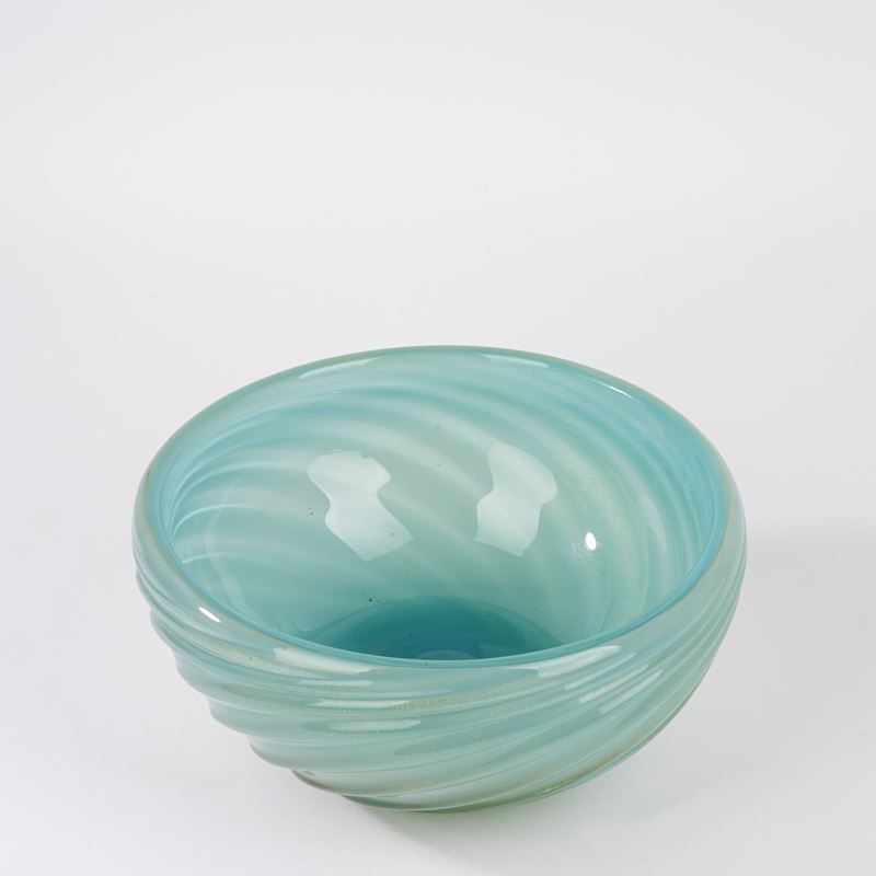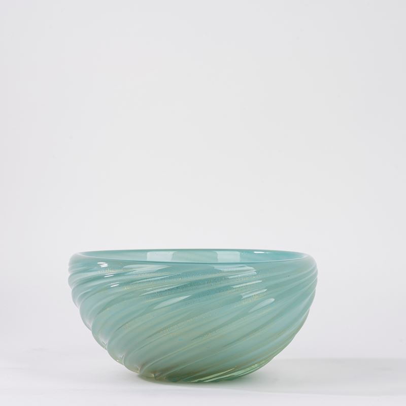 Centrotavola in vetro costolato turchese con avventurina, Murano