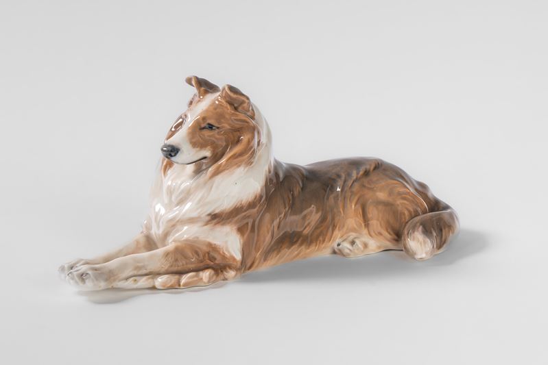 Due cani tra cui un pechinese su due zampe in porcellana policroma. Royal Copenaghen, Danimarca,...