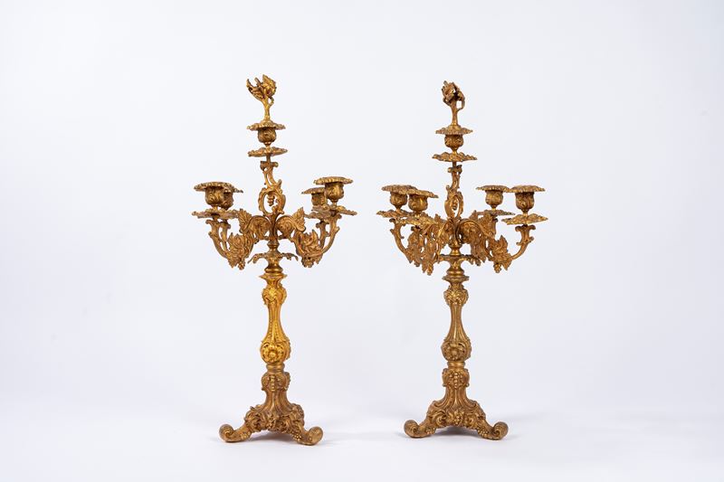 a cinque luci, decorati grappoli d'uva e con tralci di vite