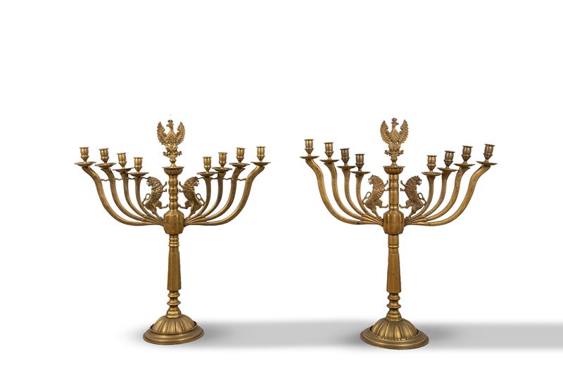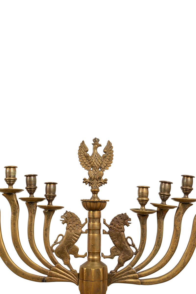 a otto braccia più uno centrale sormontato dall'aquila polacca, due leoni rampanti affrontati ai lati