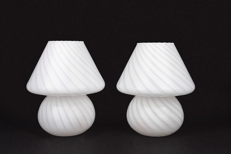 Due gruppi in porcellana policroma raffiguranti cerbiatti.
