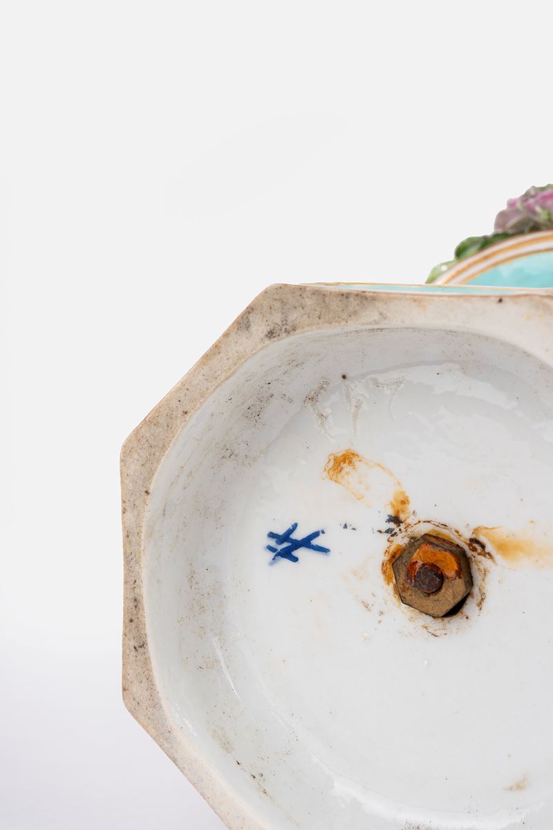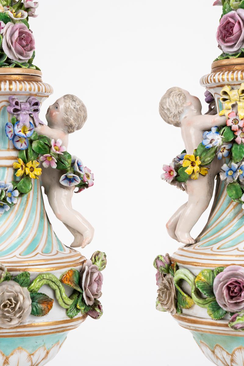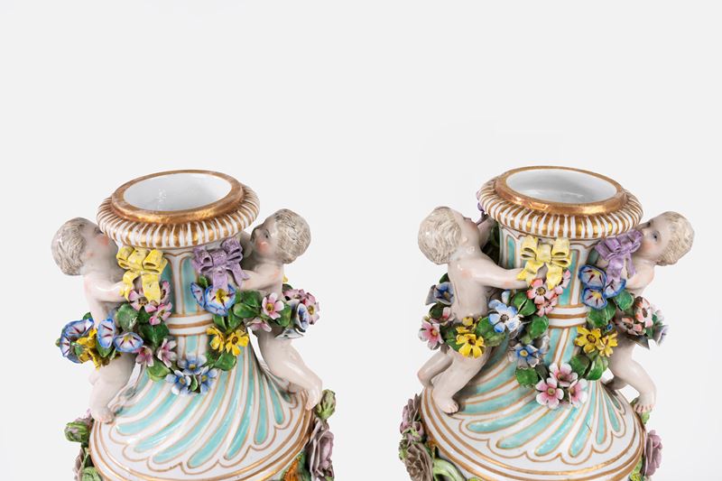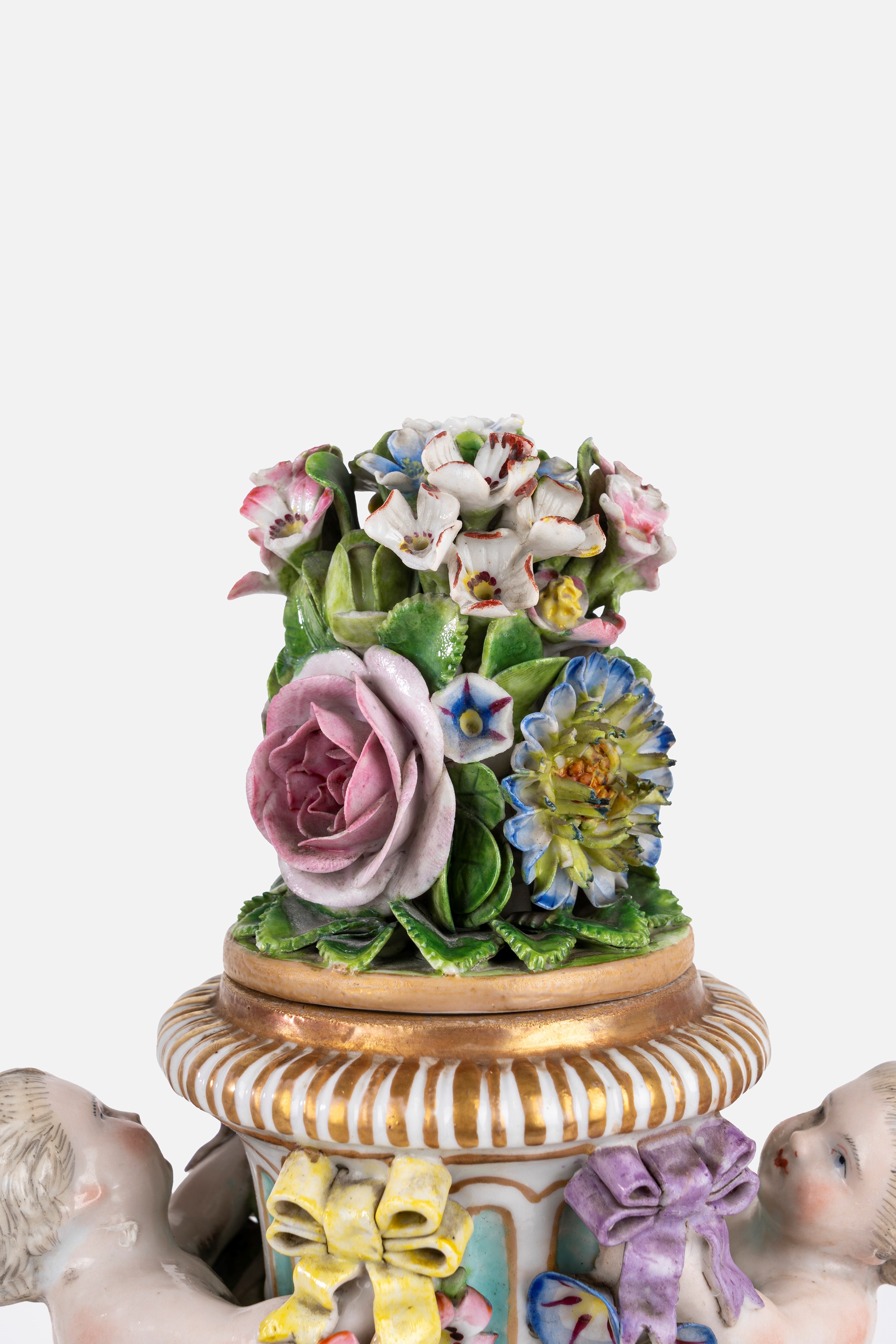 con puttini che reggono un festone di fiori e motivi scanalati, coperchi a guisa di bouquet di fiori