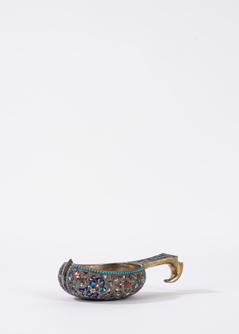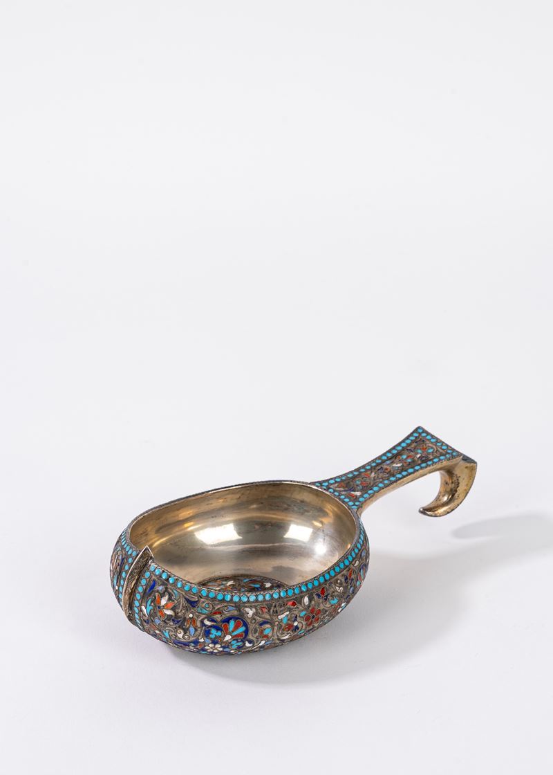 Lotto composto da cinque bicchierini e una tazzina in argento, Russia secolo XIX