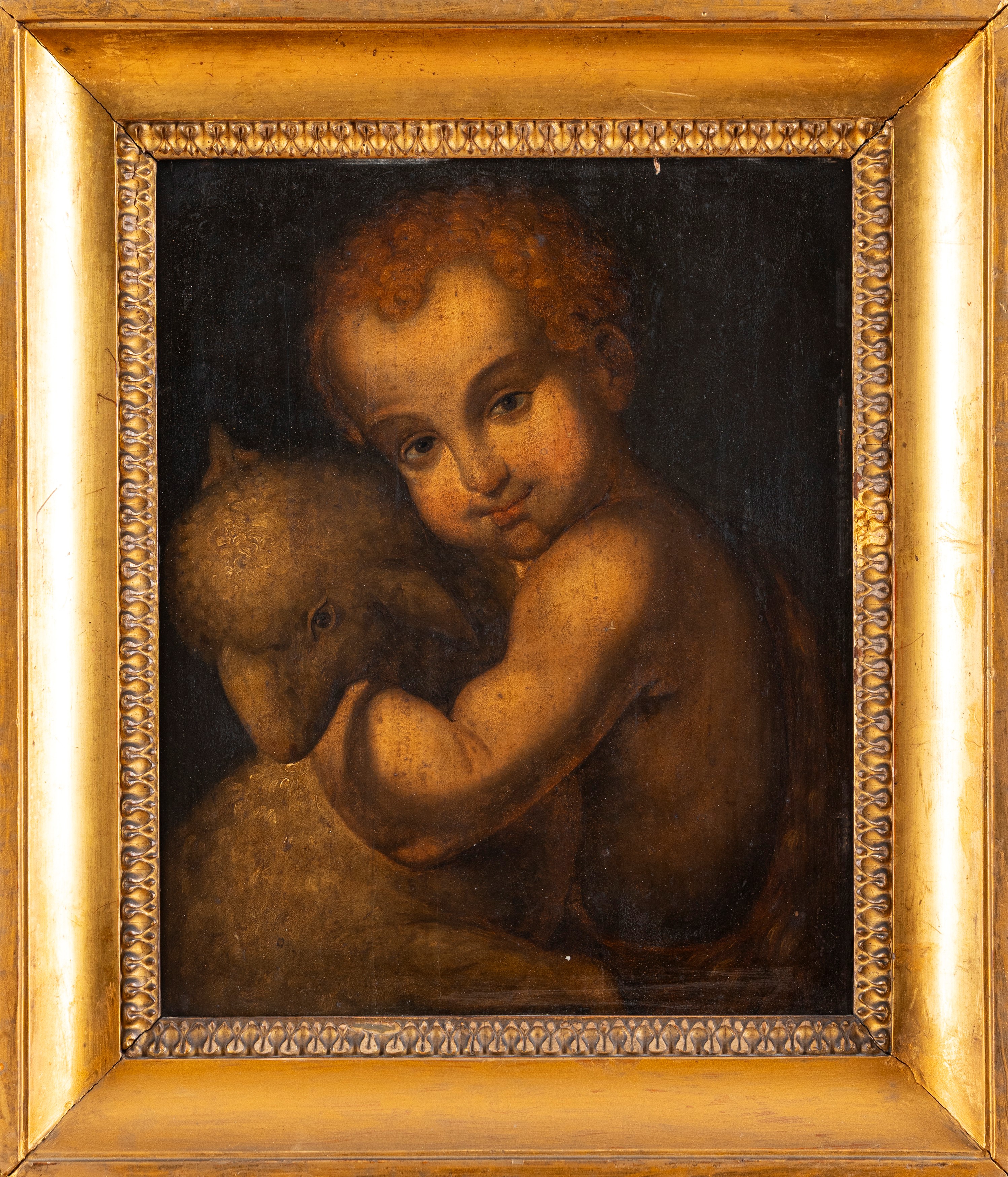 Il dipinto recupera un'invenzione di Bernardino Luini, il Gesù Bambino con agnello (olio su tavola, cm 28 x 25) conservato alla Pinacoteca Ambrosiana di Milano (inv. n. 82).
