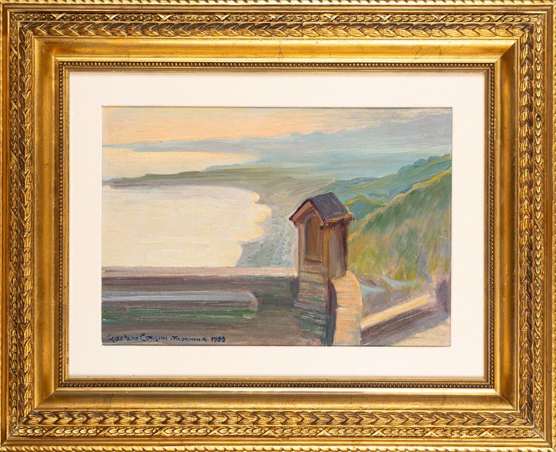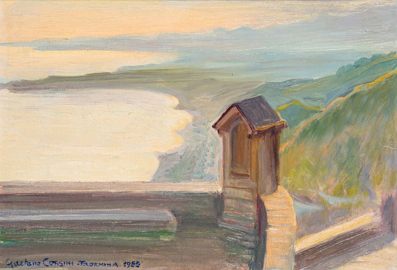 firmato, locato e datato in basso a destra: Gaetano Corsini - Taormina 1955