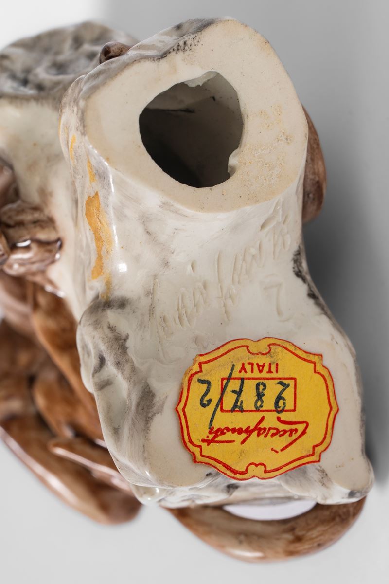 Firma e numeri incisi sotto alla base, con bollino cartaceo