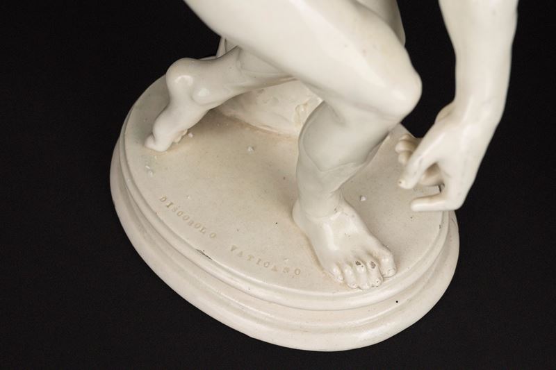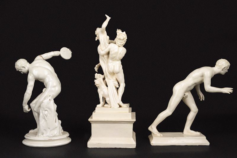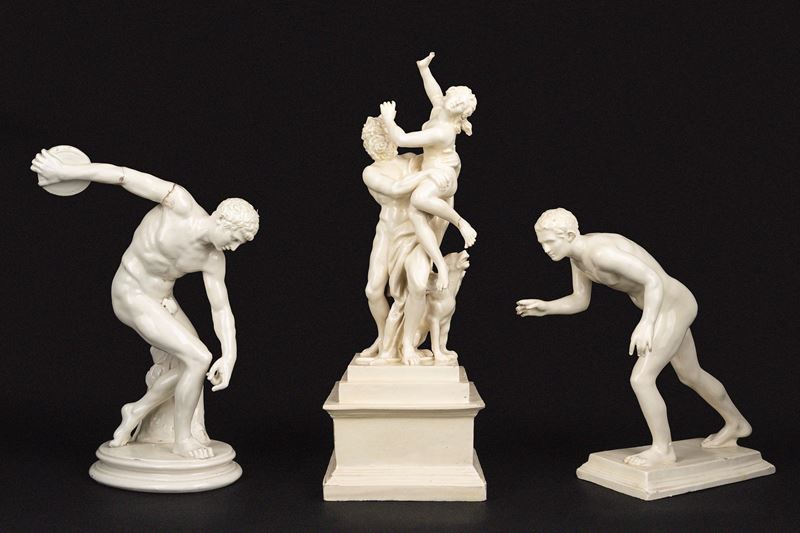 il Discobolo con N coronata incussa sotto la base e intitolato sulla base DISCOBOLO VATICANO, secolo XVIII, difetti, rotture e restauri; il Corridore secolo XIX, difetti e mancanze; il Ratto di Proserpina tratto dal celebre prototipo di Gianlorenzo Bernini, secolo XIX,