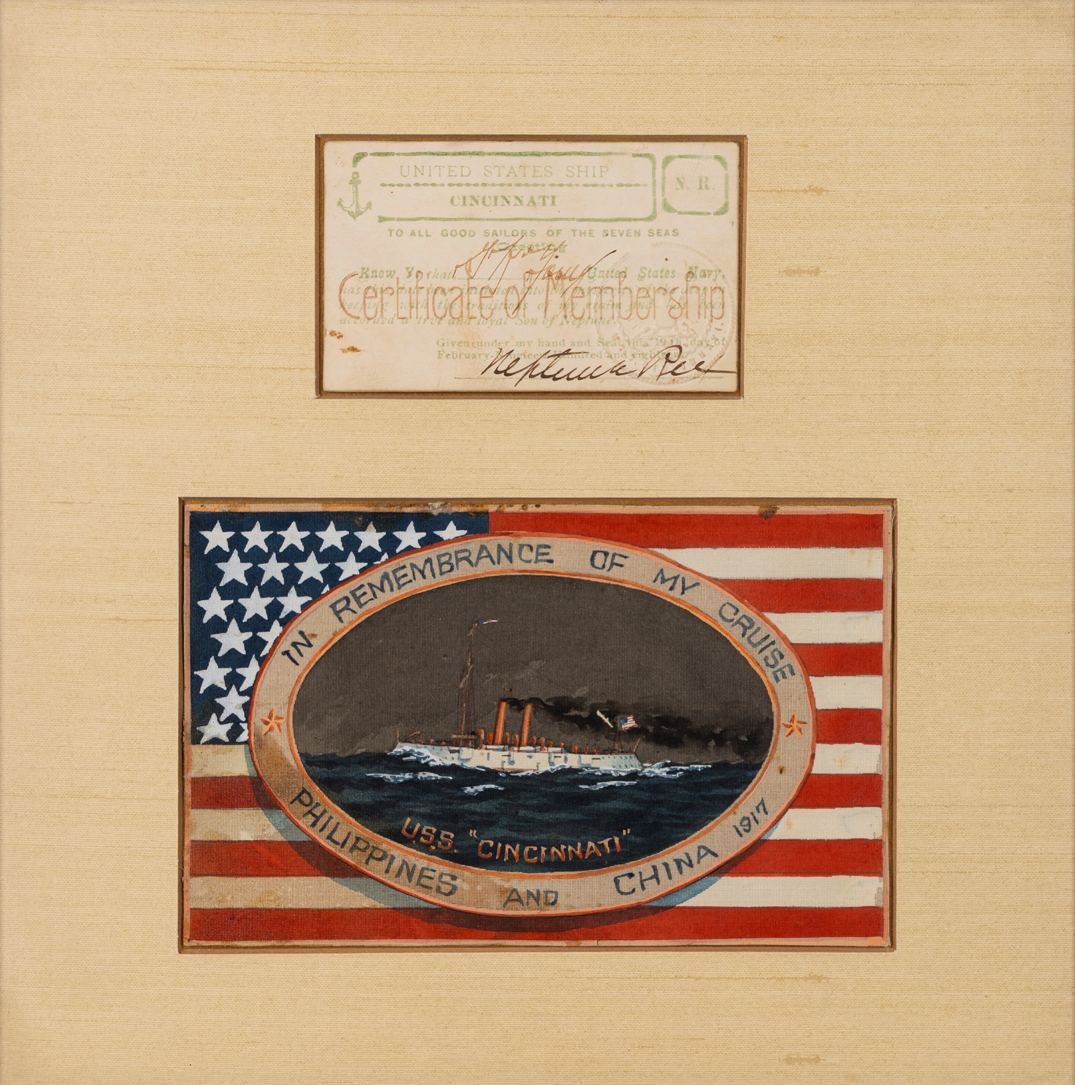 un cimelio della nave americana Cincinnati nella sua crociera alle Filippine e in Cina, 1917
