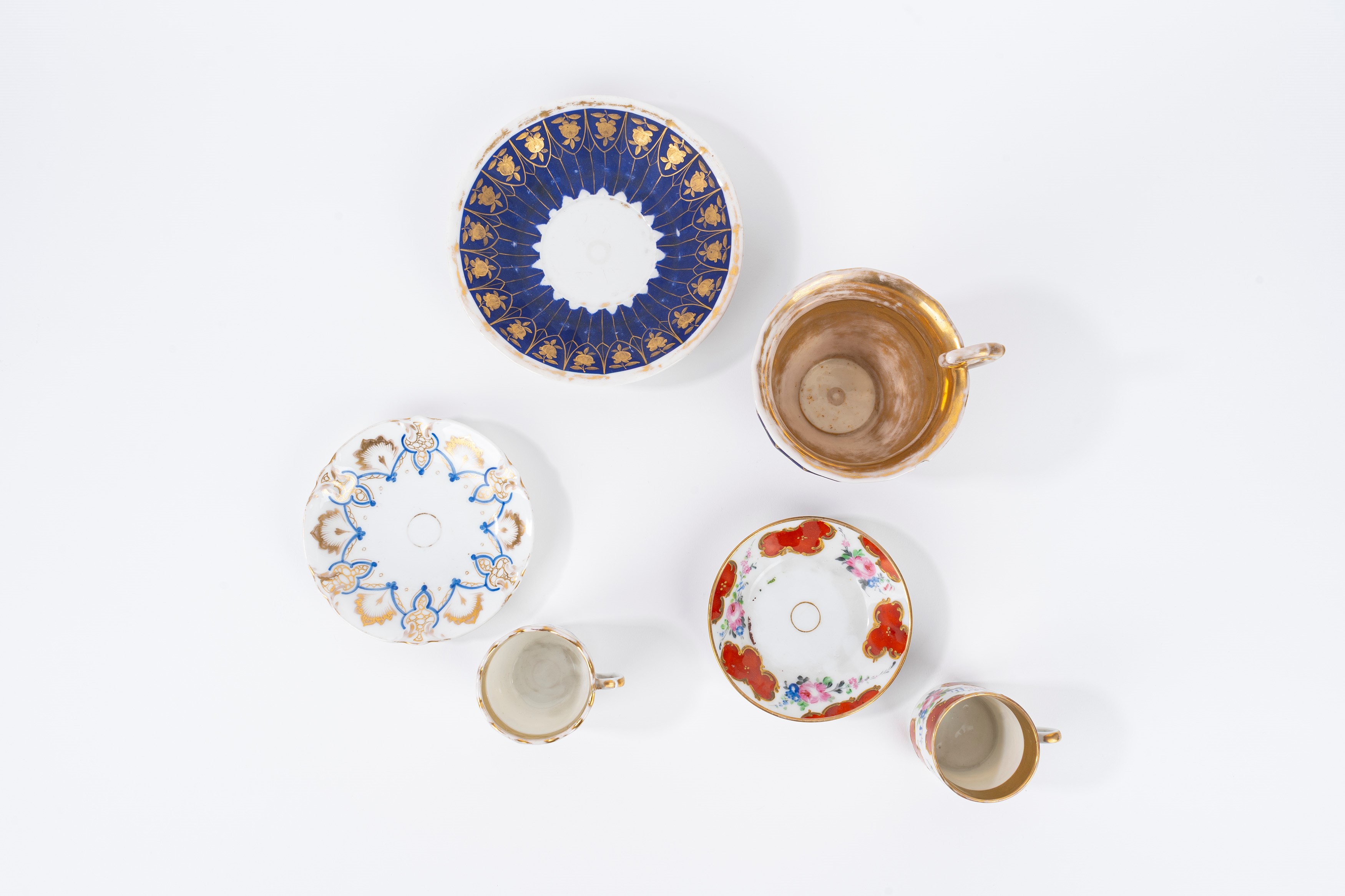 Tazzina e piattino in porcellana policroma manifattura Limoges, secolo XIX