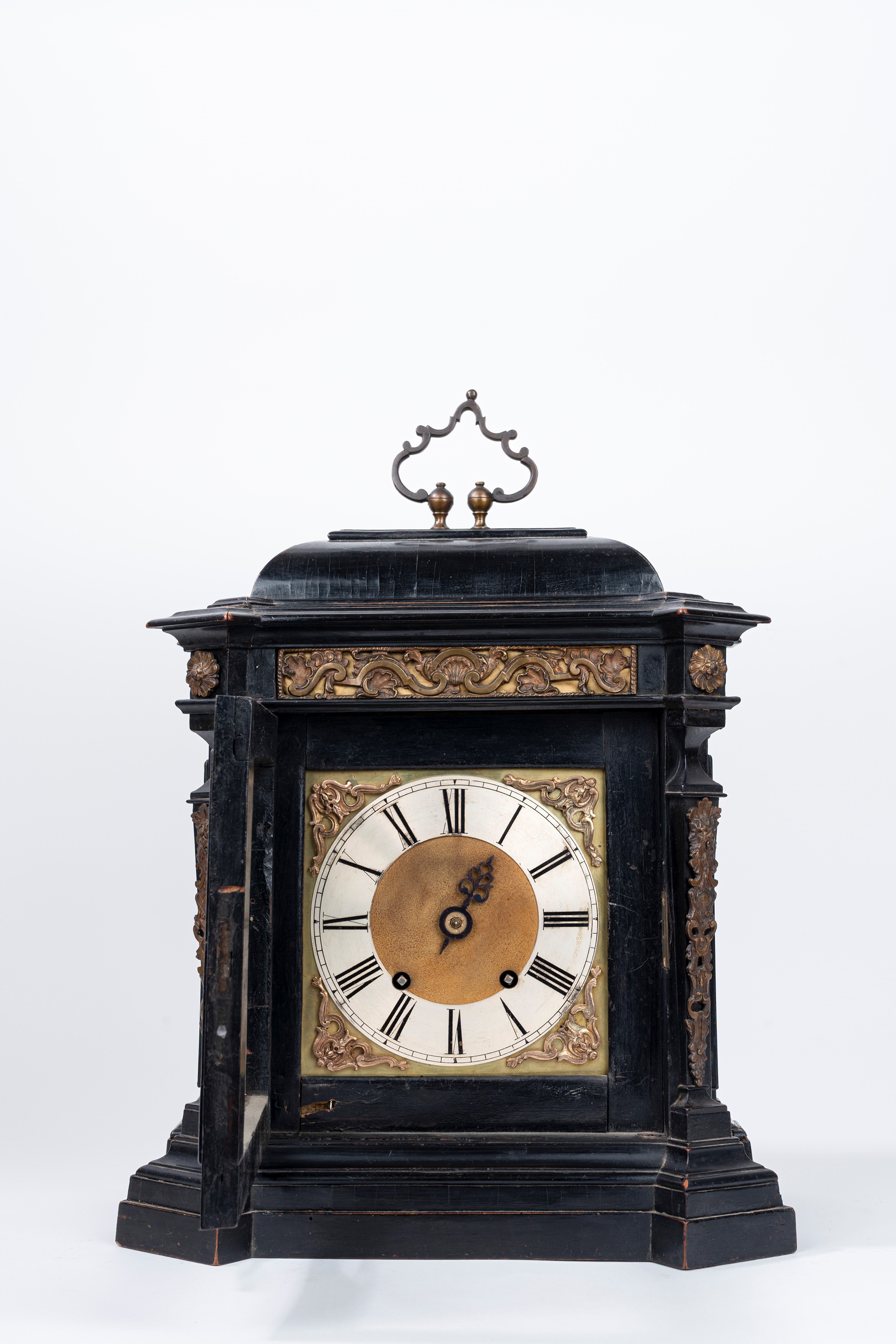 quadrante in bronzo dorato e metallo argentato, numeri romani