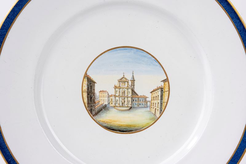 Piatto in porcellana con veduta di Piazza San Marco a Firenze, manifattura Ginori a Doccia, inizi secolo XIX