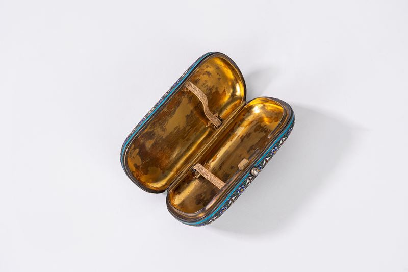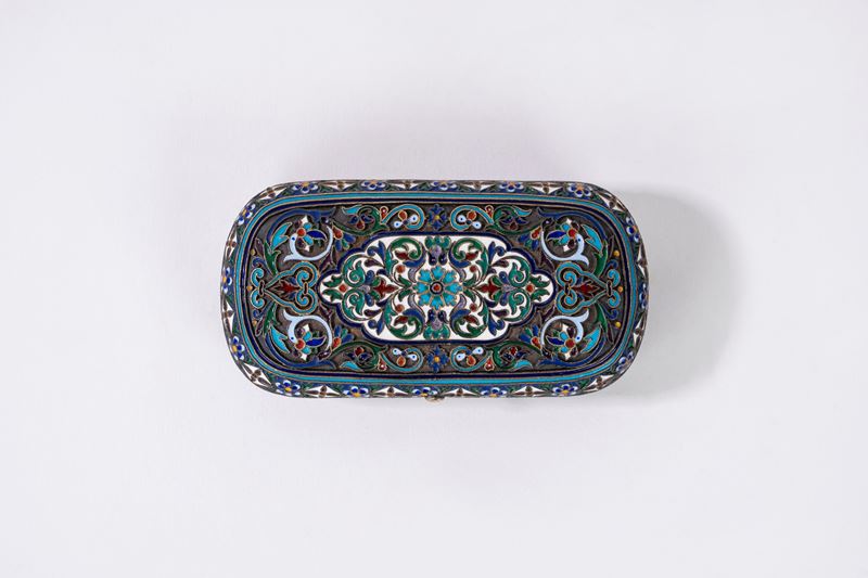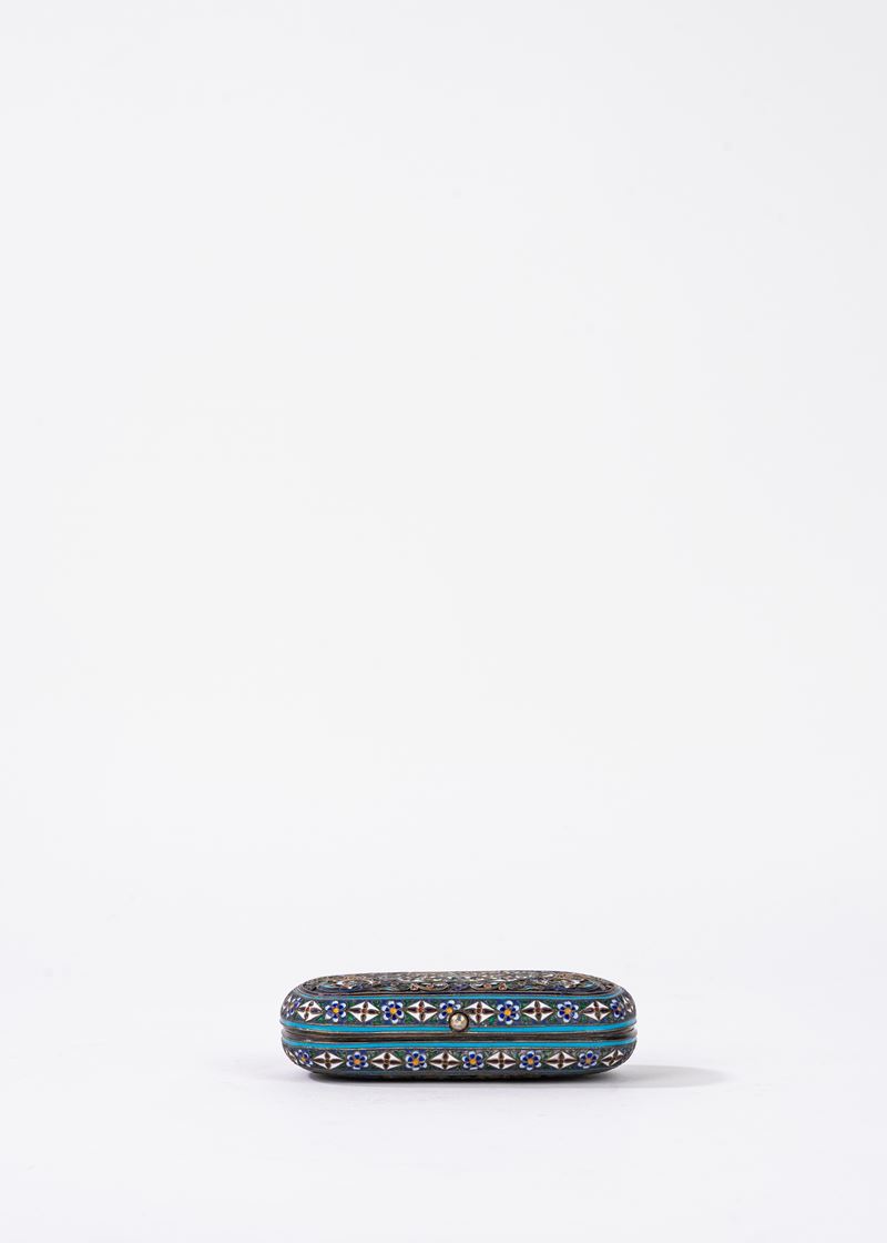 Scatolina in argento niellato con veduta di città sul coperchio, Russia secolo XIX