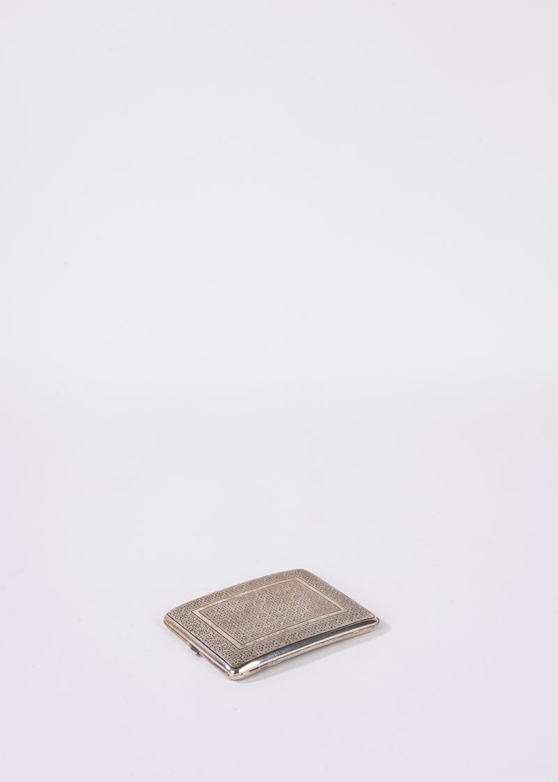 Lotto composto da due portacipria in argento 800 e una scatola portasigarette rivestita in lamina...