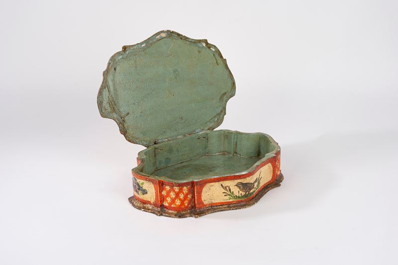 Scatola in legno laccato e decorato ad arte povera, Venezia secolo XVIII
