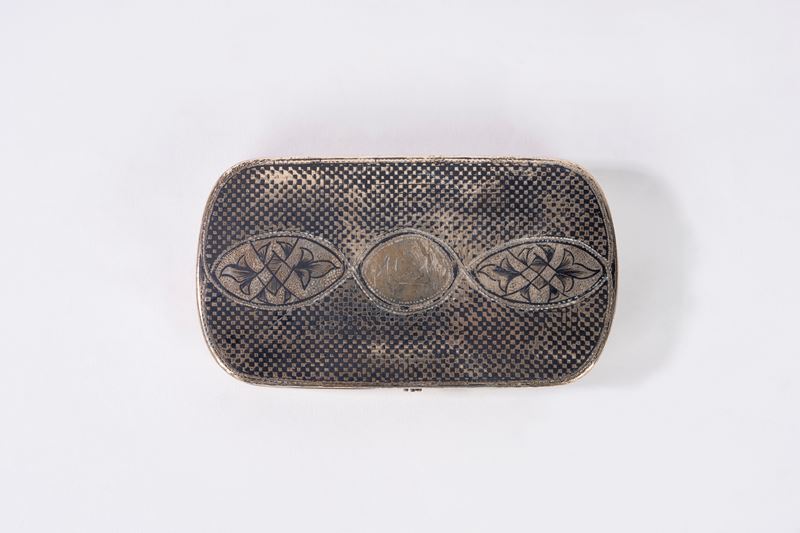 Lotto composto da due portacipria in argento 800 e una scatola portasigarette rivestita in lamina...