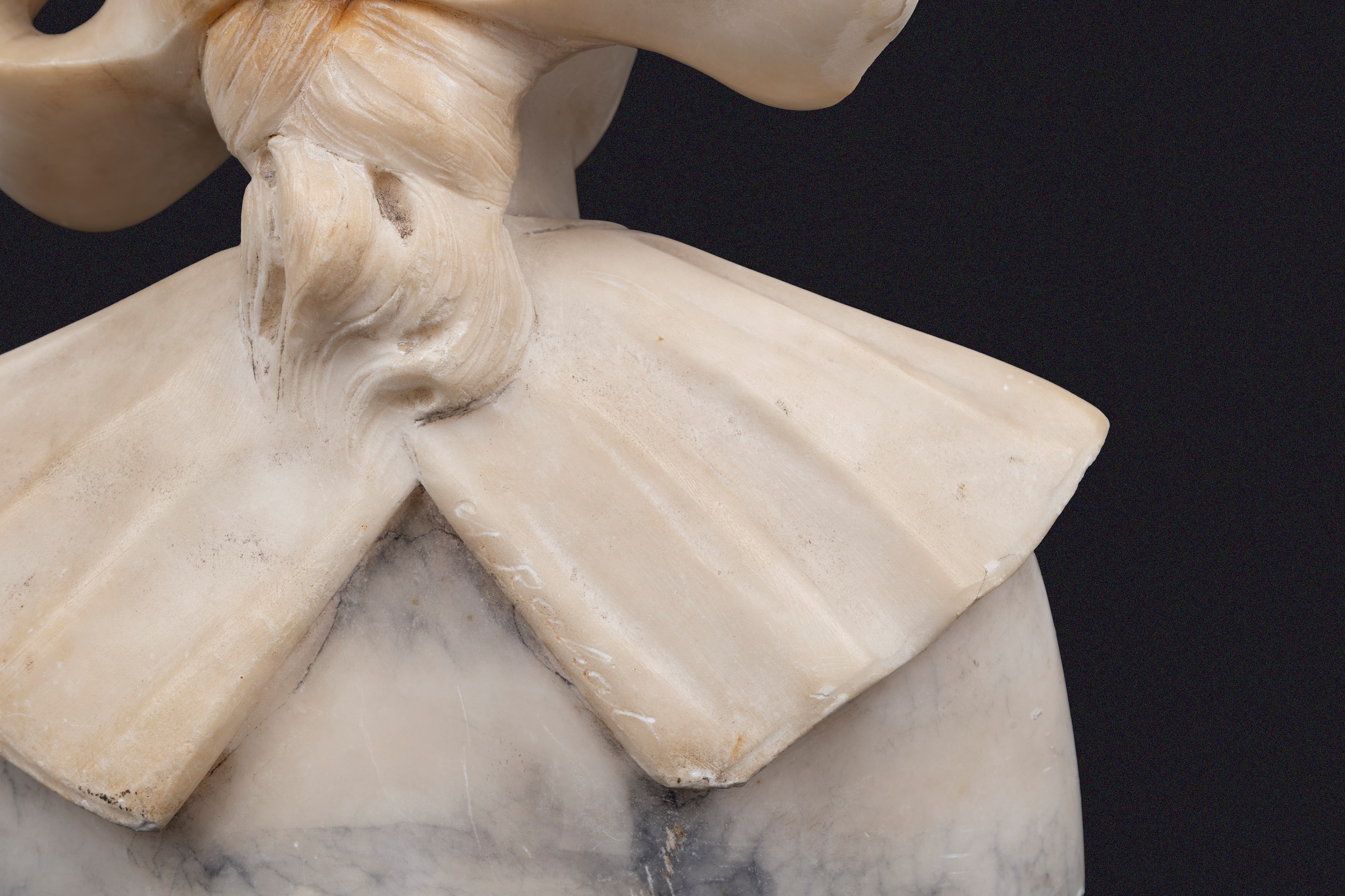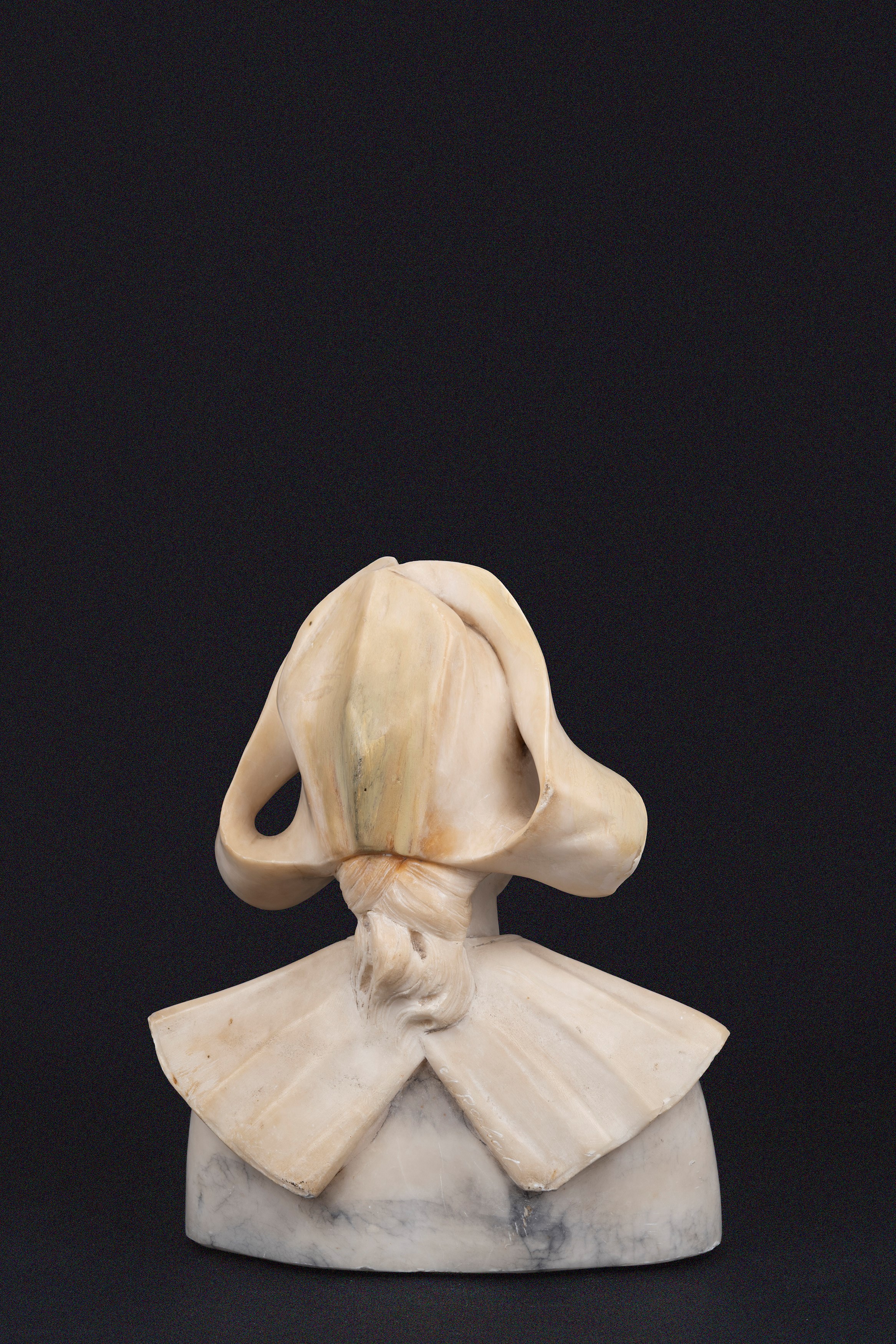 Scultura in alabastro raffigurante busto di giovane donna bretone