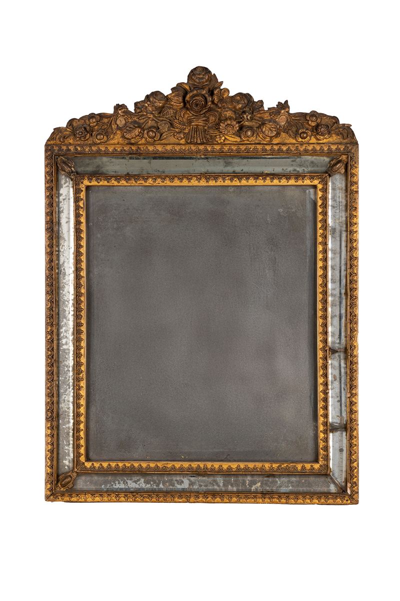 Specchiera in legno intagliato e dorato, secolo XIX