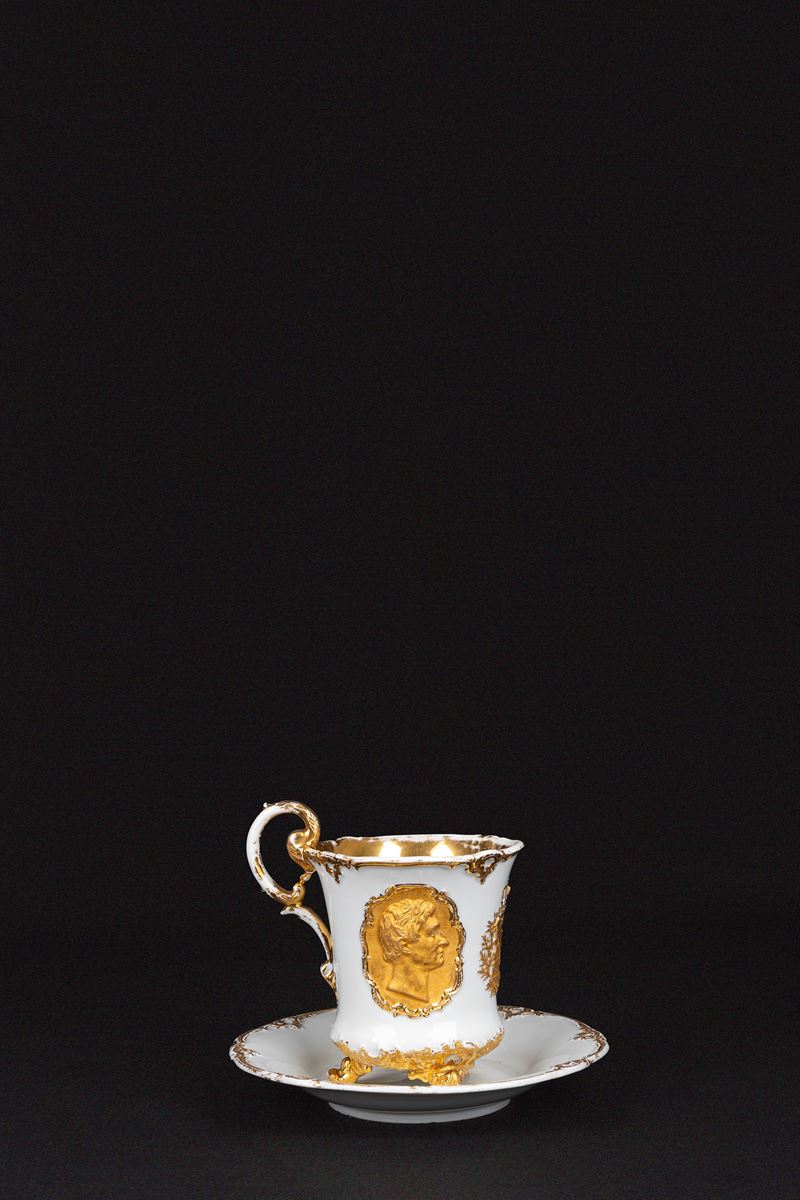 marchio con spade incrociate sotto la base, decorata con profili maschili e femminili entro clipei e stemma araldico, lievi mancanze alla doratura