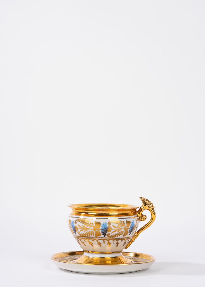 Vaso biansato in porcellana policroma e oro, Francia secolo XIX
