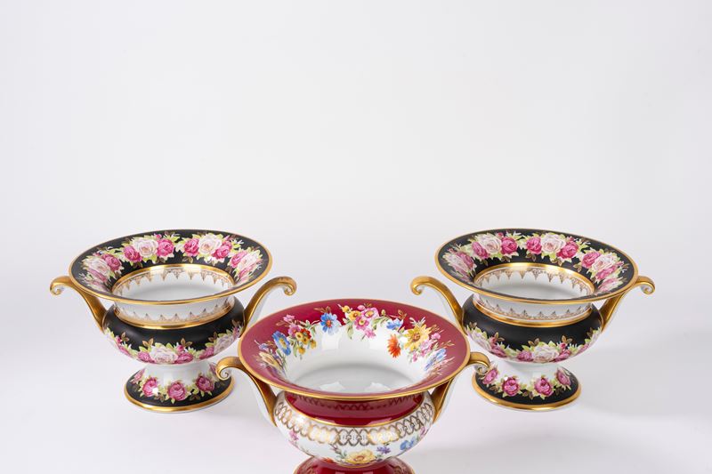 Tre alzatine in porcellana policroma Vieux Paris