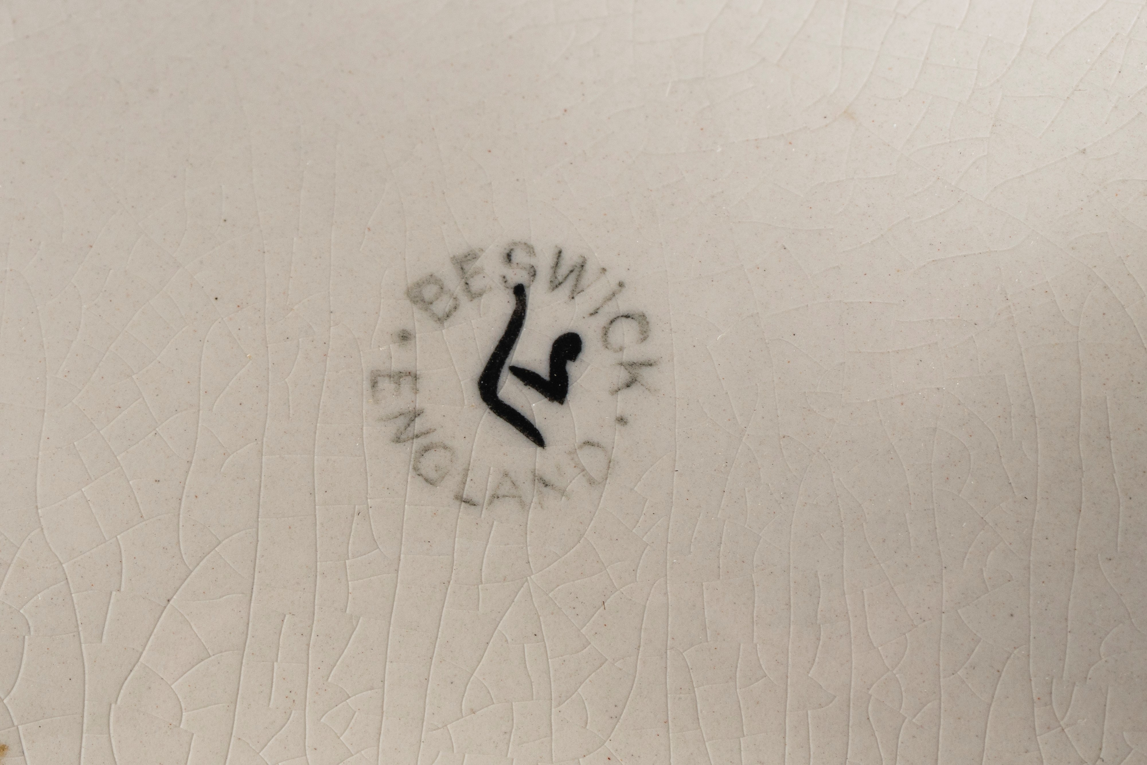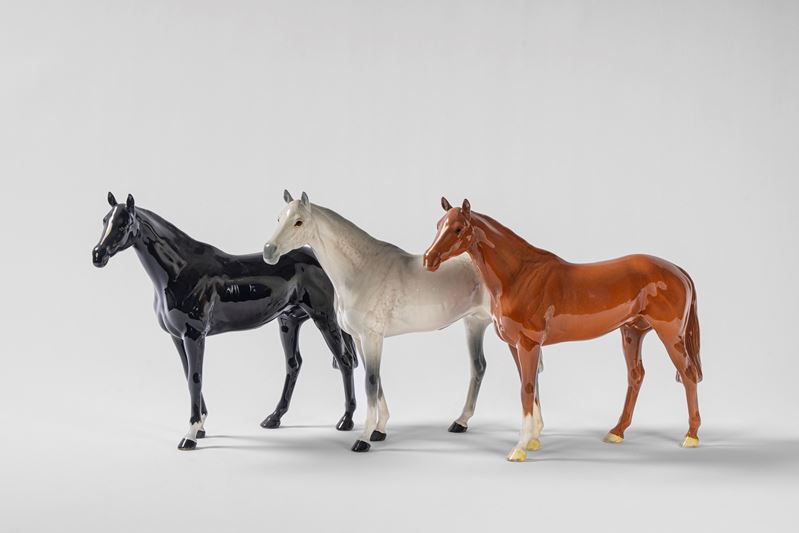 Un cavallo bianco e un cavallino in porcellana policroma. Beswick, Inghilterra, secolo XX. Più un...