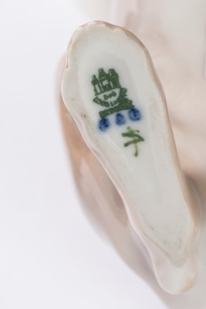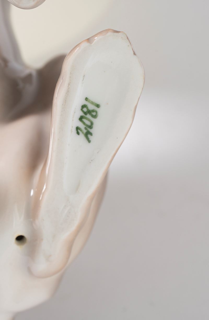 Tre lepri in porcellana policroma. Manifatture Bing & Grøndahl, Danimarca e Royal Doulton, Inghilterra, tutti secolo XX