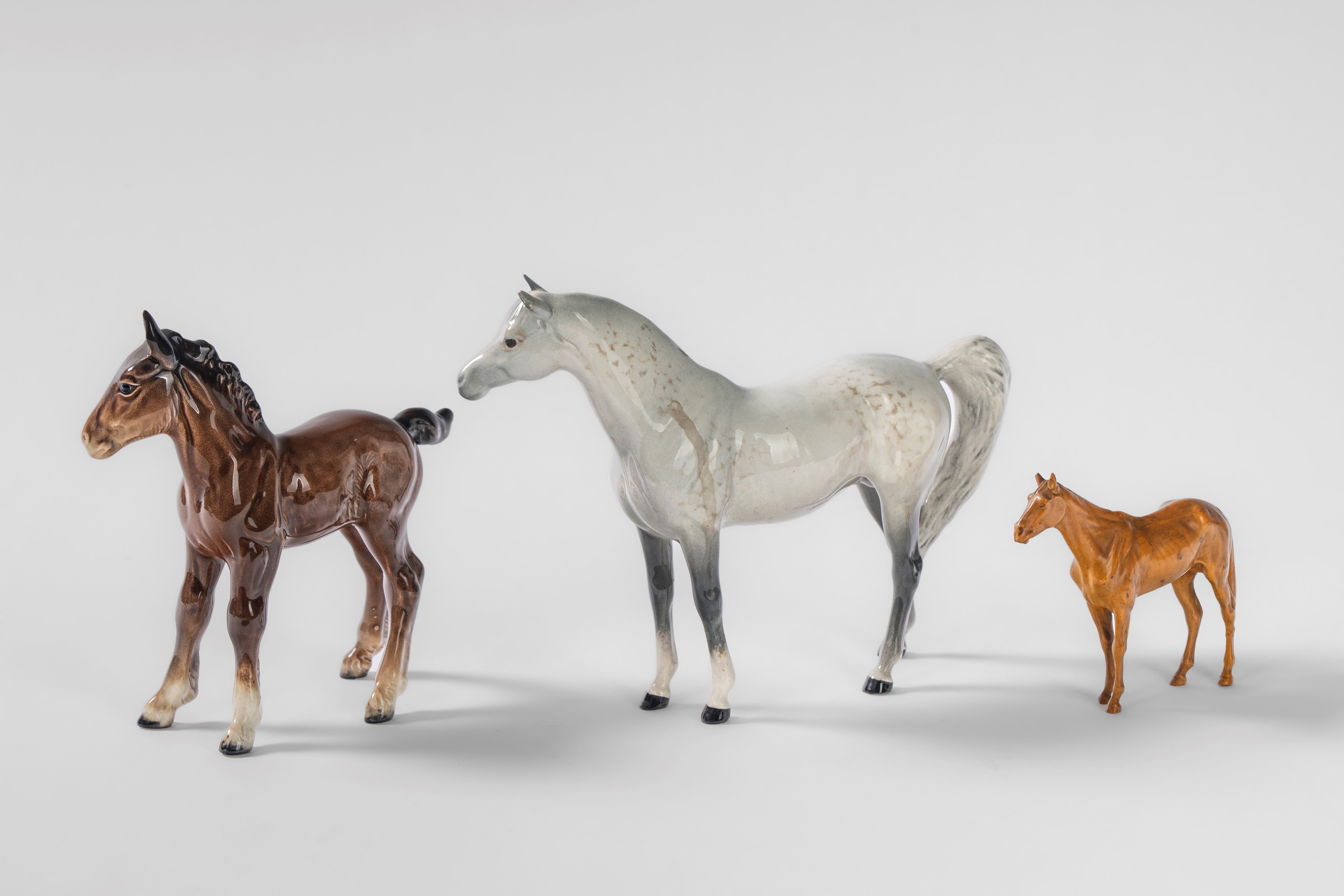 Due gruppi in porcellana raffiguranti una coppia di cavalli e una di asinelli