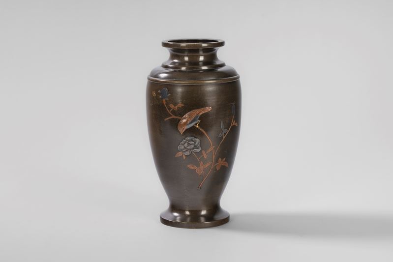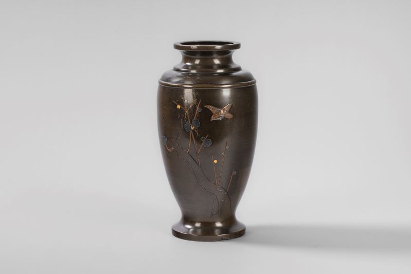 Trittico composto da due vasi bottiglia e incensiere in cloisonné, Giappone, epoca Meiji.