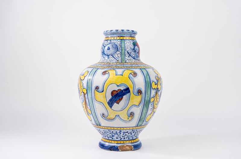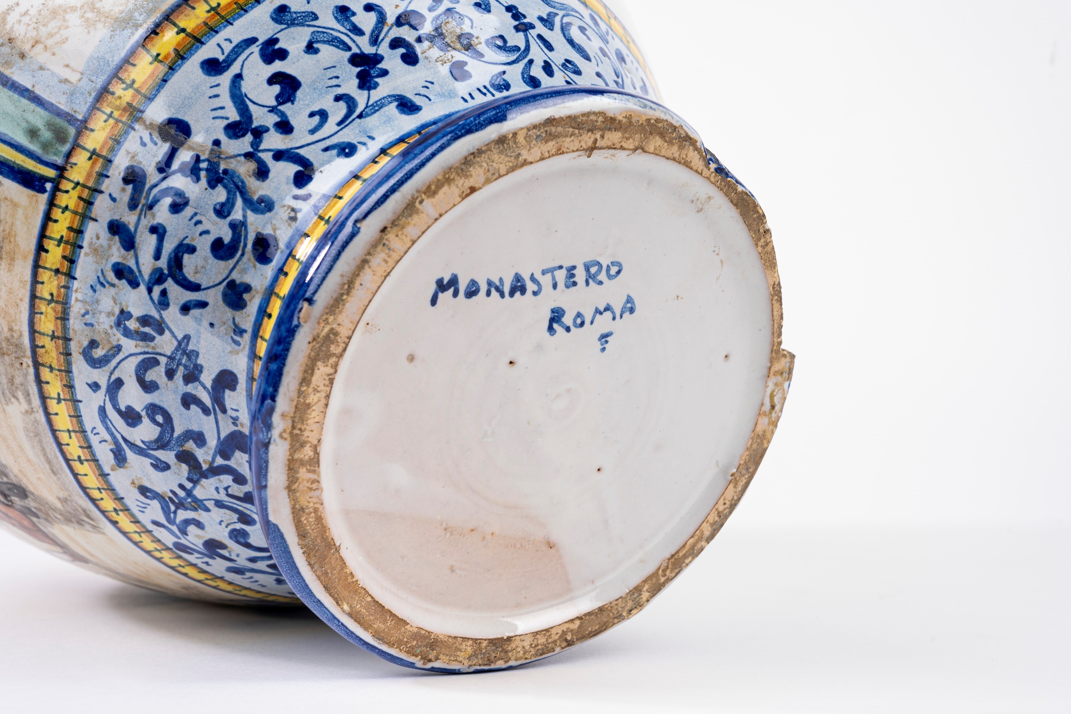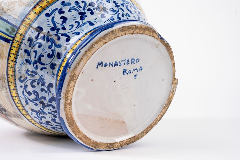 Vaso in maiolica istoriato, Monastero Roma