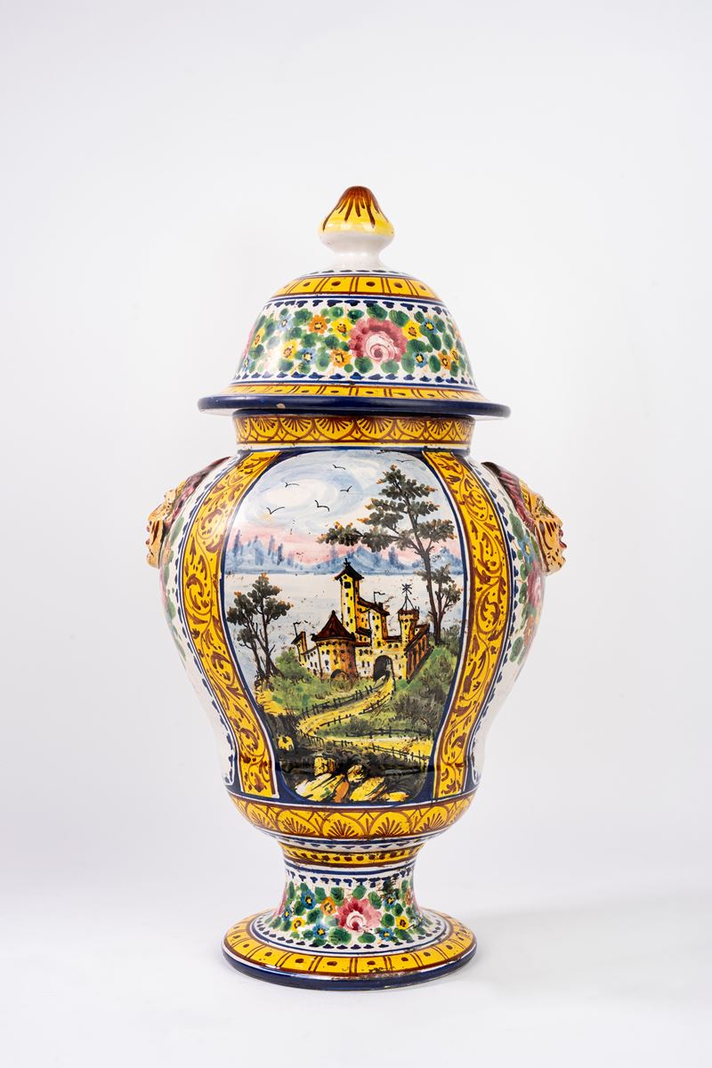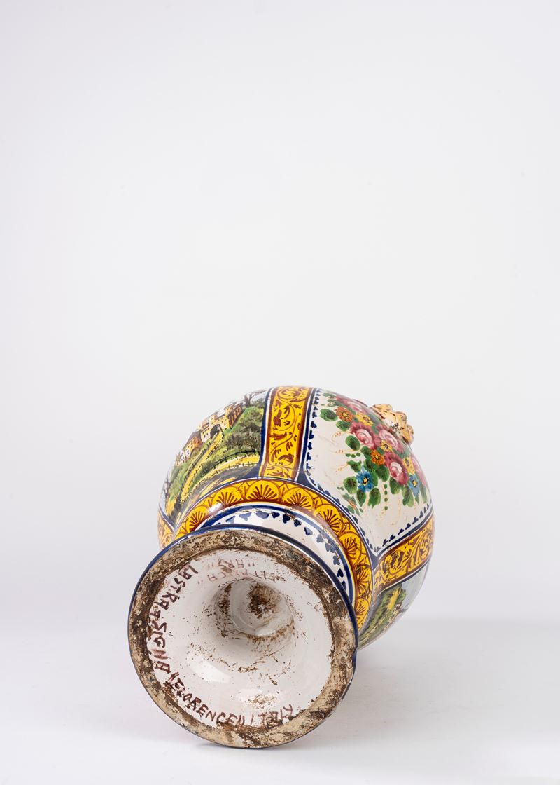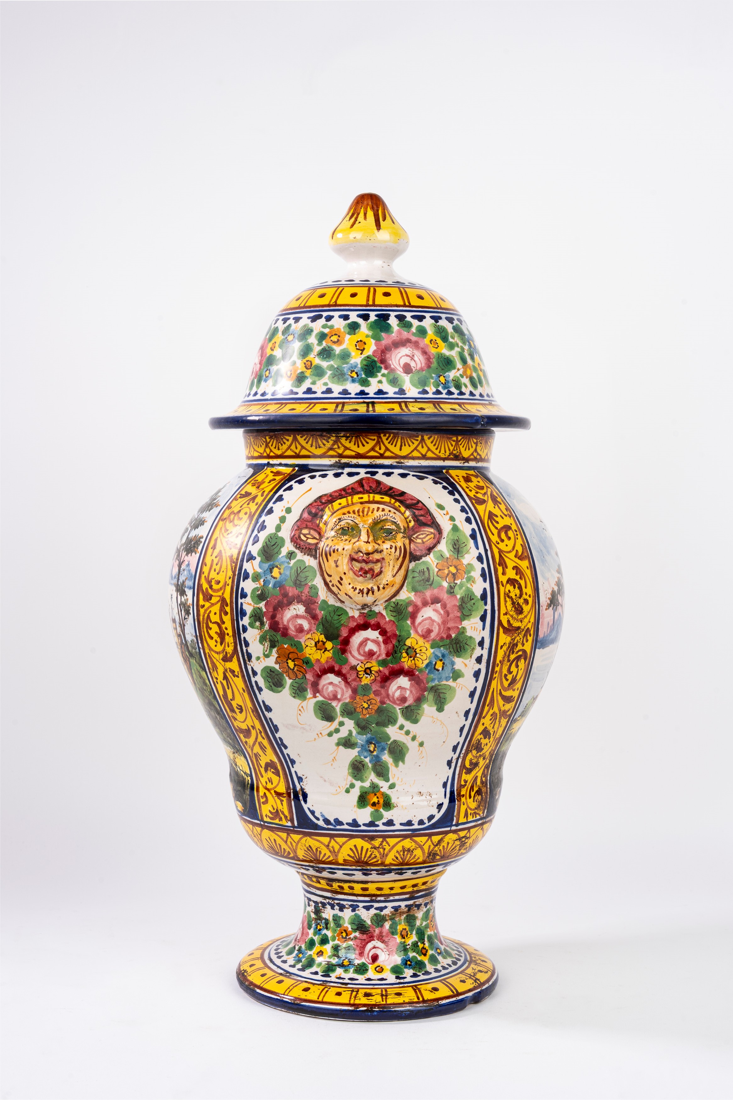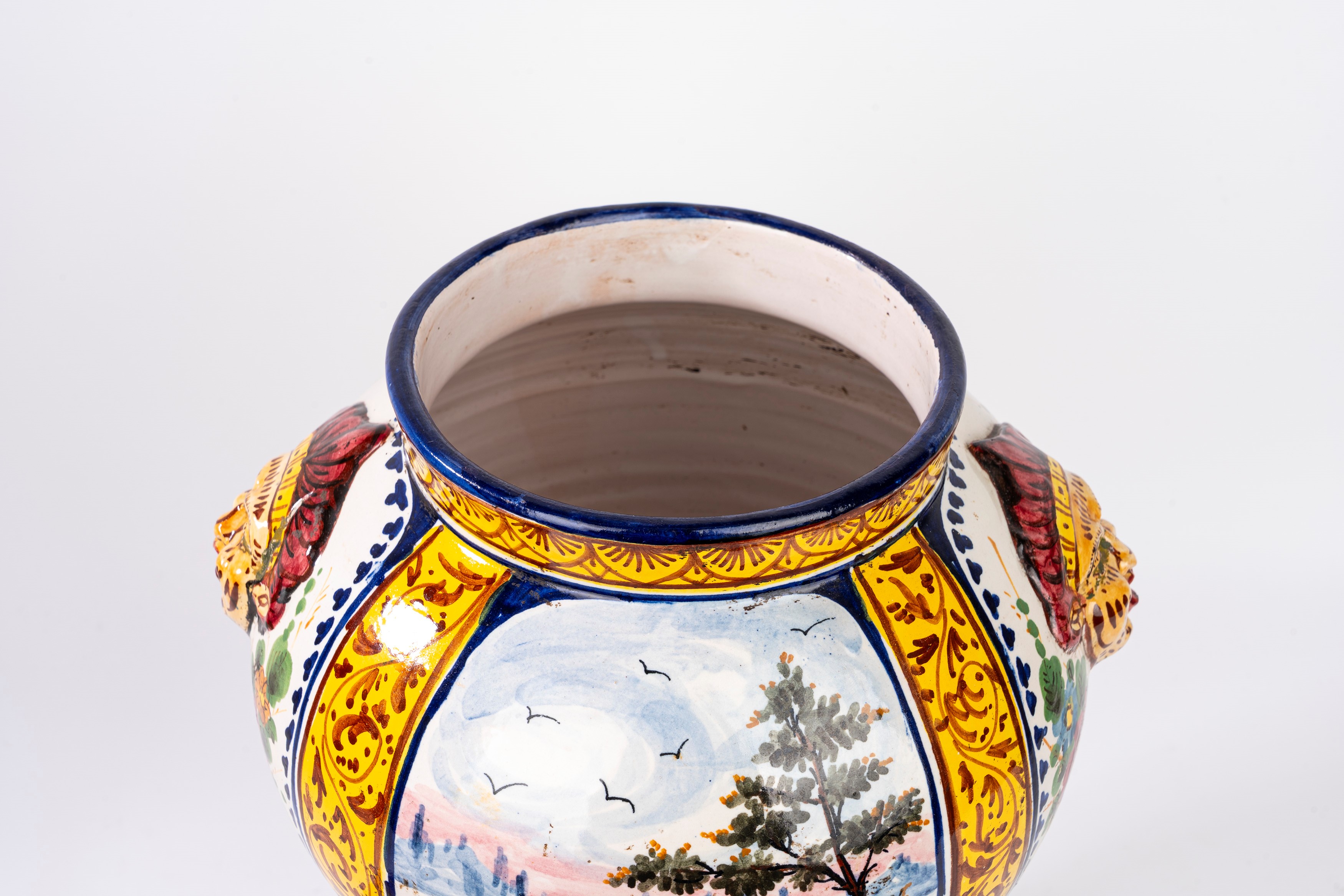 decorato con paesaggi entro riserve e mascheroni in rilievo