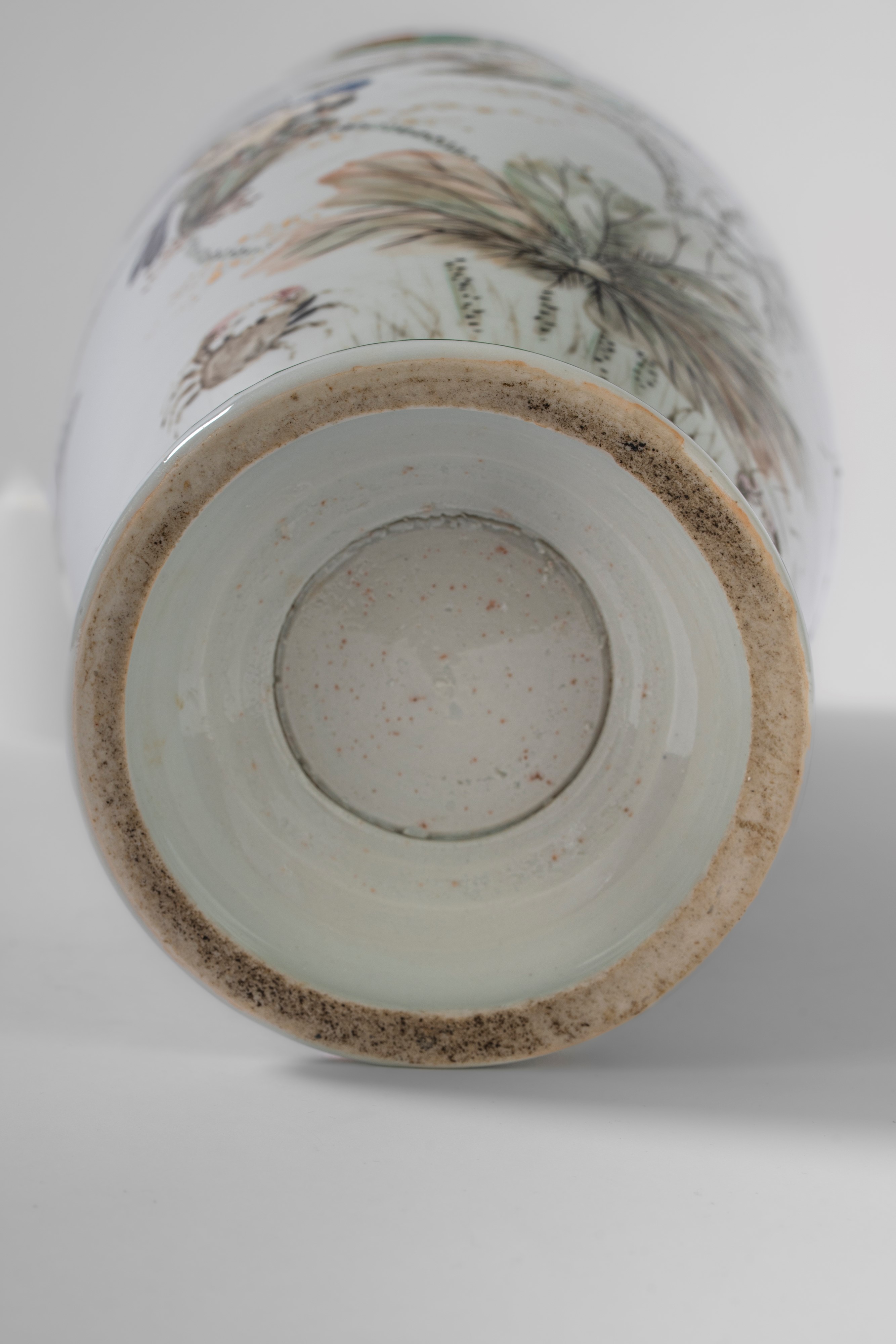 珐琅彩瓷瓶,饰昆虫、花卉及蟹纹,颈部饰化形把手,中国,20世纪初期