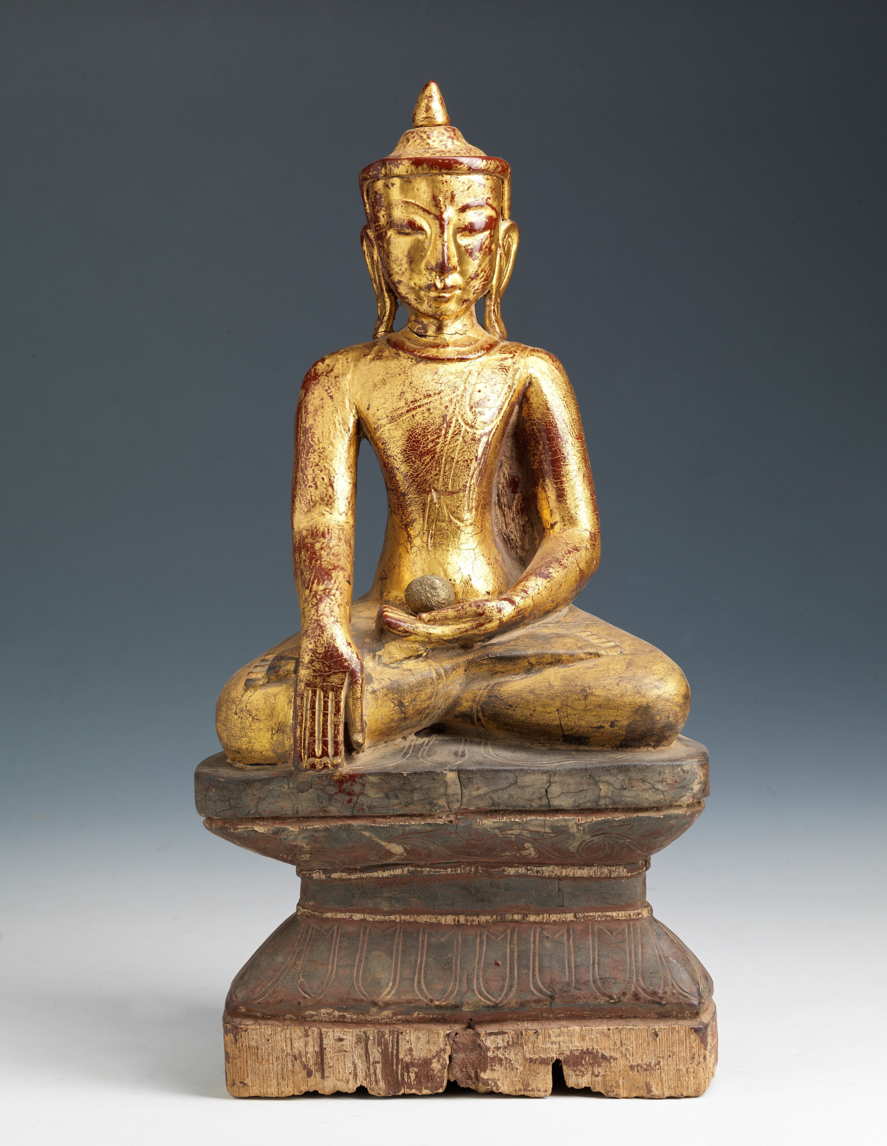 dorato e laccato, assiso in posizione di bhumisparsha
