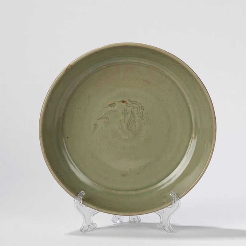 Piatto in porcellana celadon Longquan. Cina, fine dinastia Yuan/inizio dinastia Ming