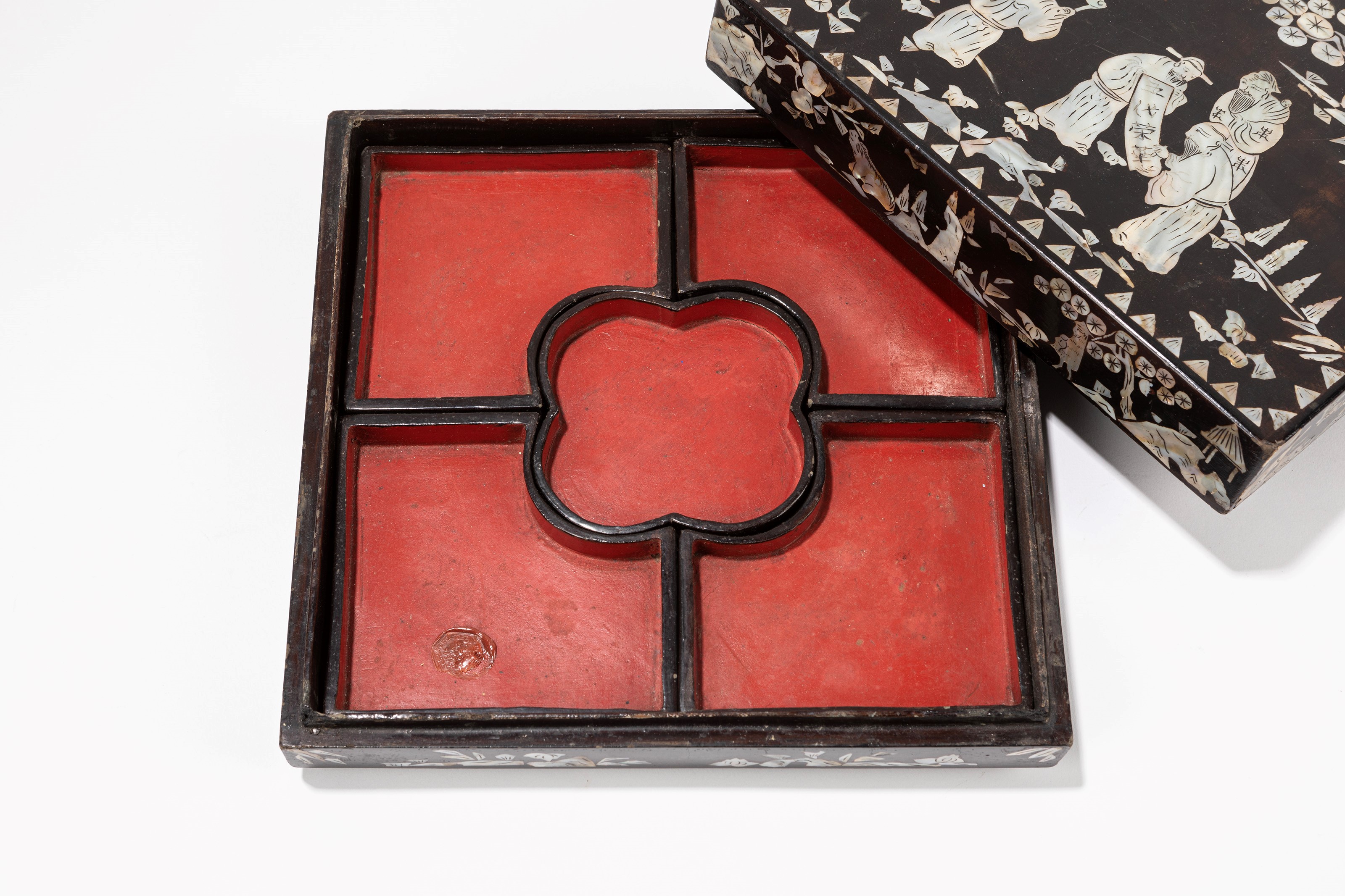 SCATOLA QUADRATA IN LACCA NERA, Cina, secolo XX