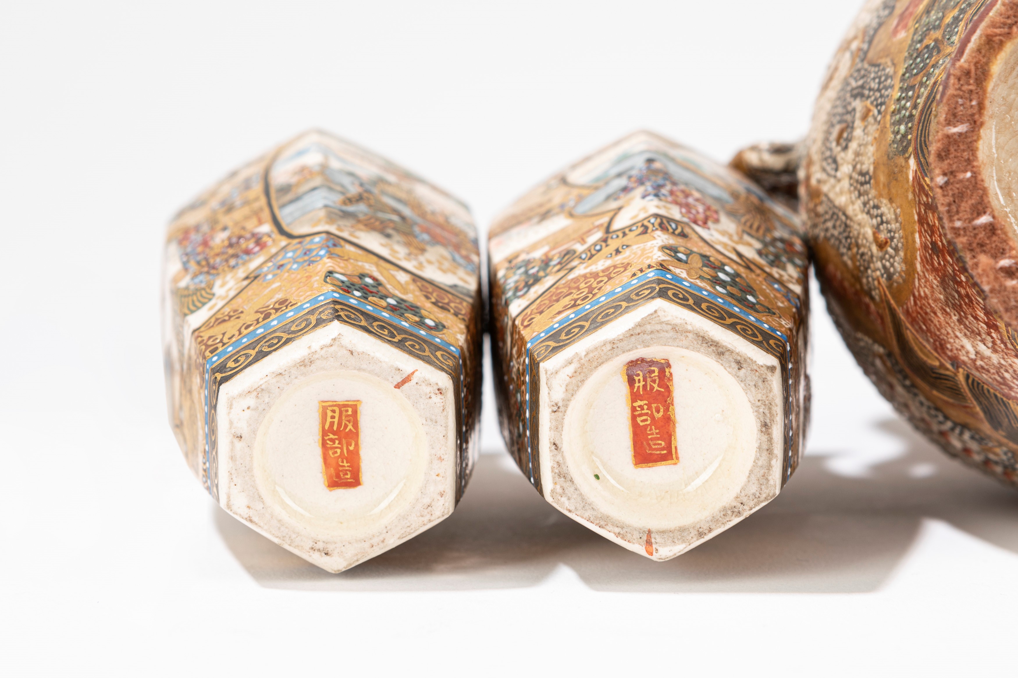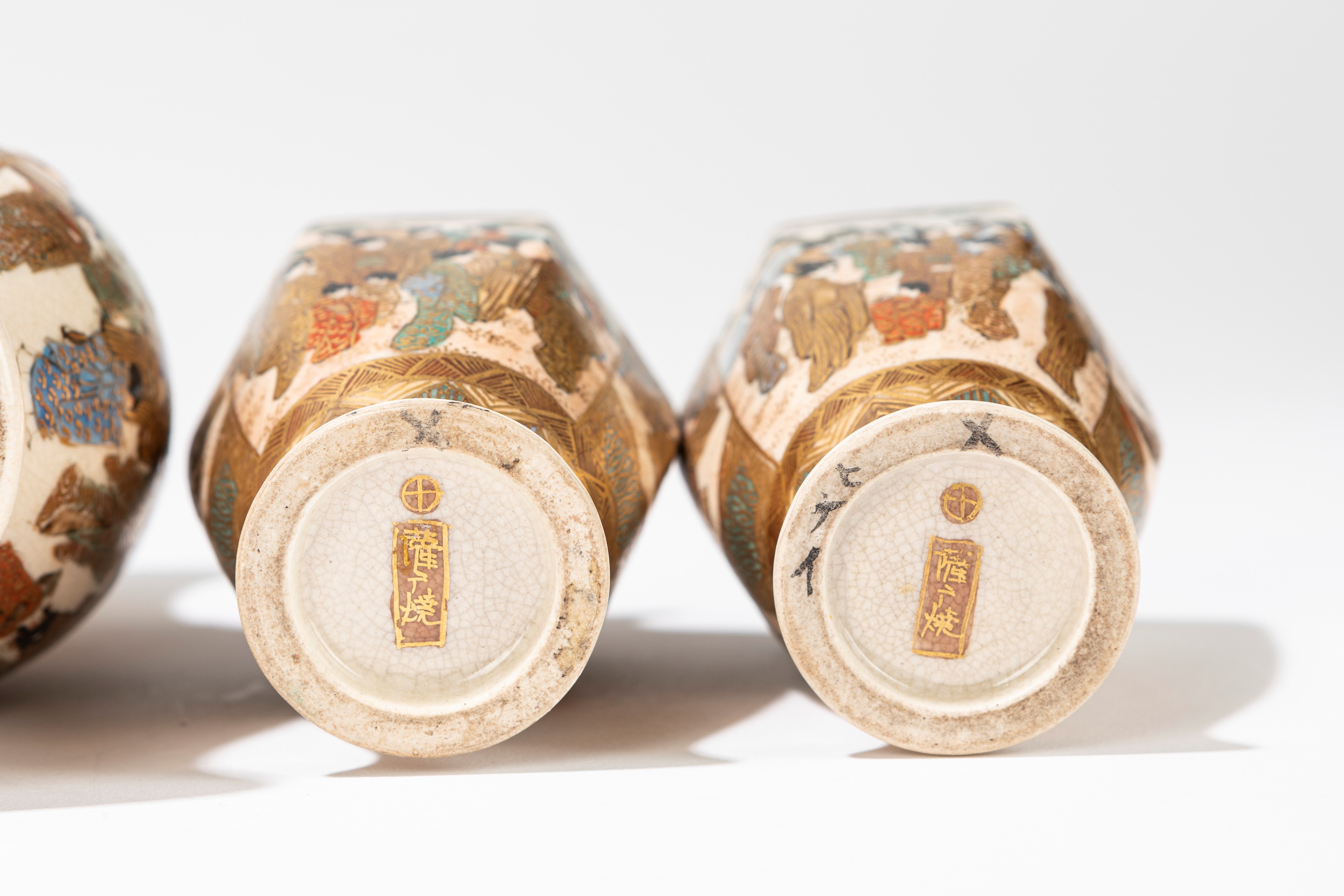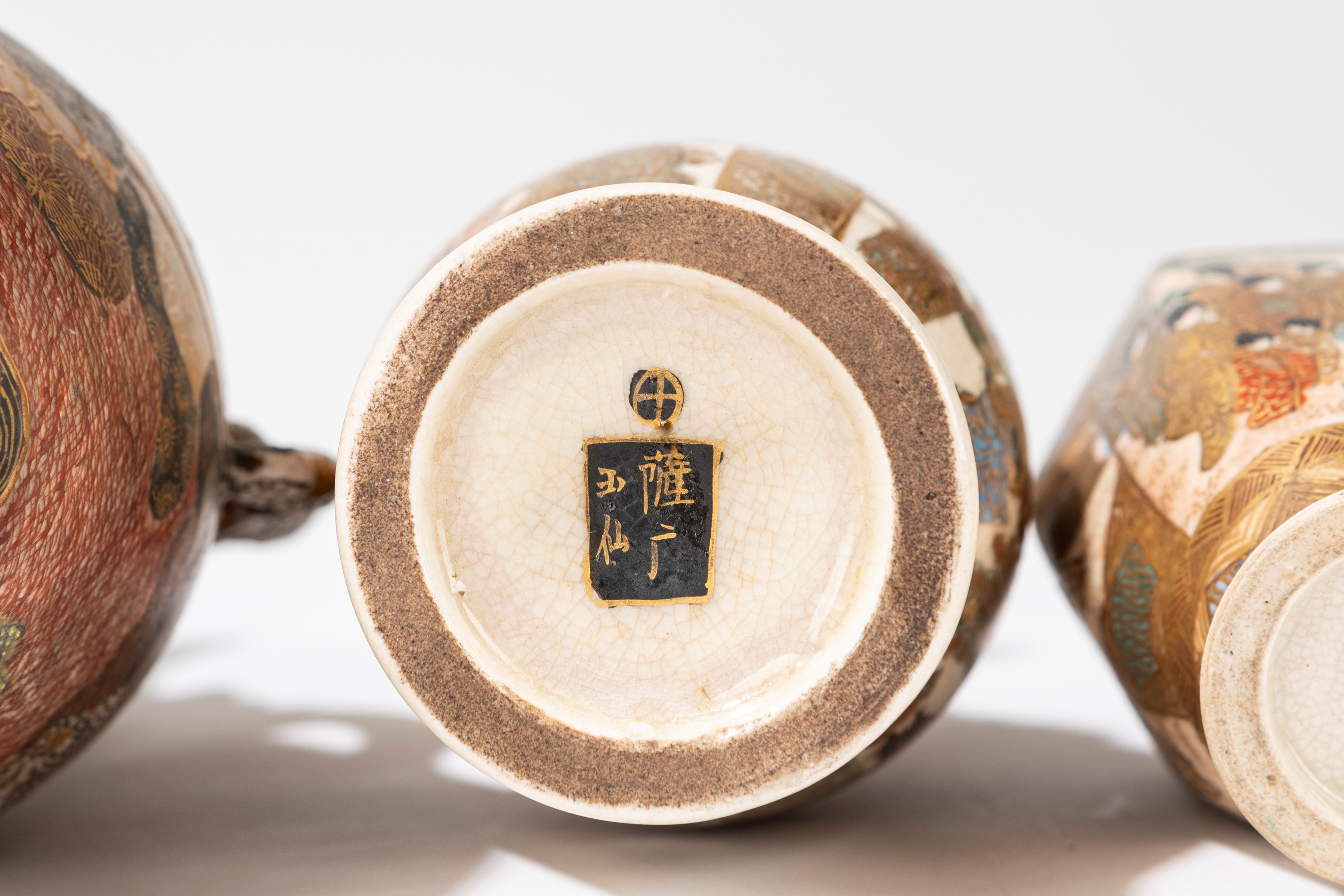 Sei piccoli vasi in ceramica Satsuma, Giappone, inizio secolo XX