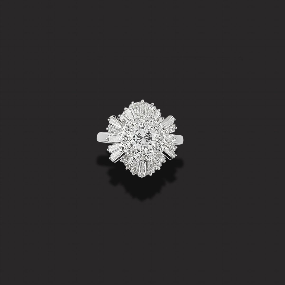 Anello in oro bianco 18K e diamanti taglio brillante e tapered baguette