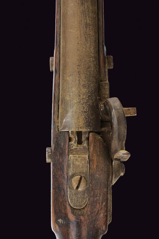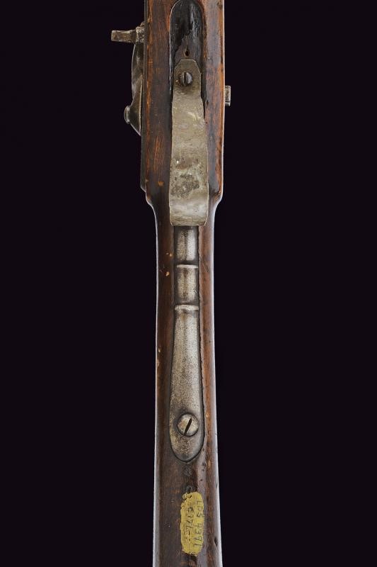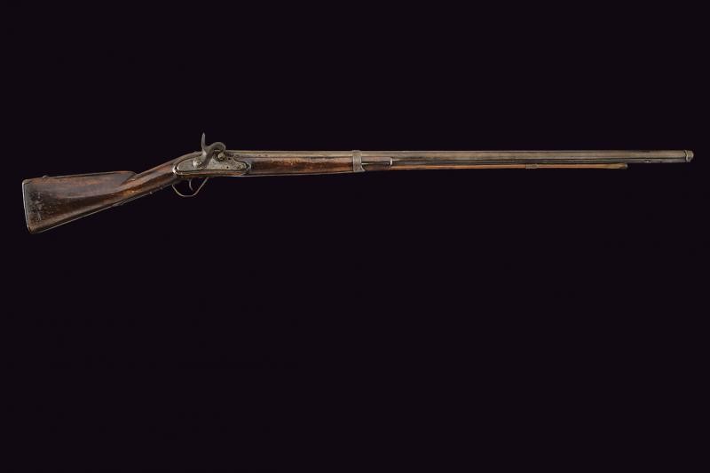 Lunga canna liscia, la base marcata con punzoni, fra cui "N" e data "848"; mirino, cal. 18 mm. Batteria ridotta a luminello, la cartella marcata "845" e con punzone imperiale austriaco. Mezza cassa in legno con fornimenti in ferro. Danni e restauri generali. Questo lotto è importato da un Paese extra UE e comporta una tassazione aggiuntiva rispetto alla commissione della casa d'aste e alla tassa sul servizio. Di conseguenza, la commissione totale, comprensiva di tutte le tasse, ammonta al 35%.