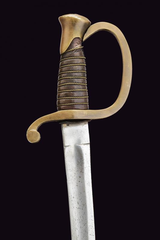 Lama curva a un filo, ampio sguscio e tallone. Fornimento monoelso in bronzo, cappetta corta. Rivestimento dell'impugnatura di restauro. Questo lotto è importato da un Paese extra UE e comporta una tassazione aggiuntiva rispetto alla commissione della casa d'aste e alla tassa sul servizio. Di conseguenza, la commissione totale, comprensiva di tutte le tasse, ammonta al 35%.