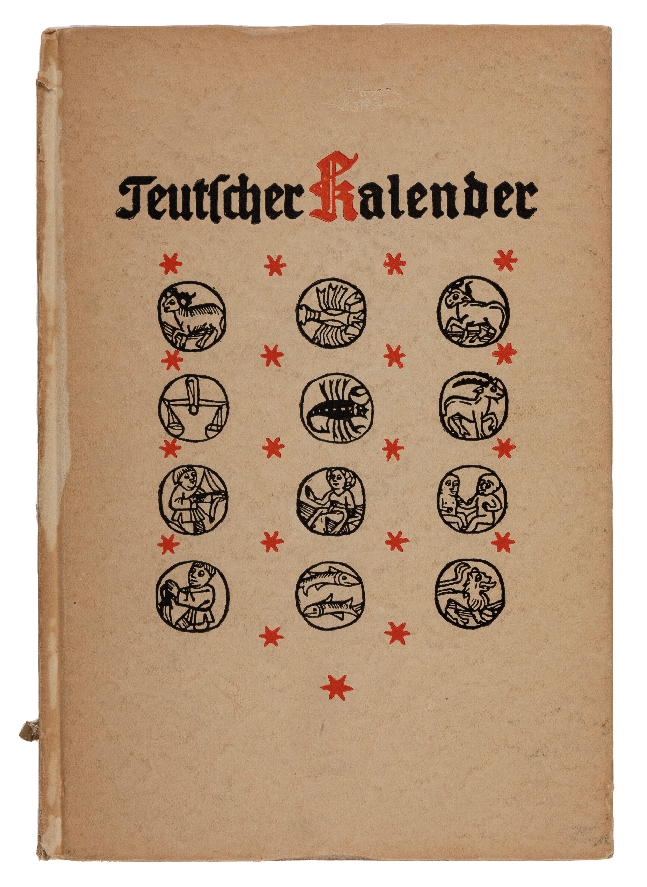 Munchen, 1922. 190 x 130 mm. Cartone editoriale. Riproduzione anastatica del Calendario impresso ad Augsburg nel 1490.