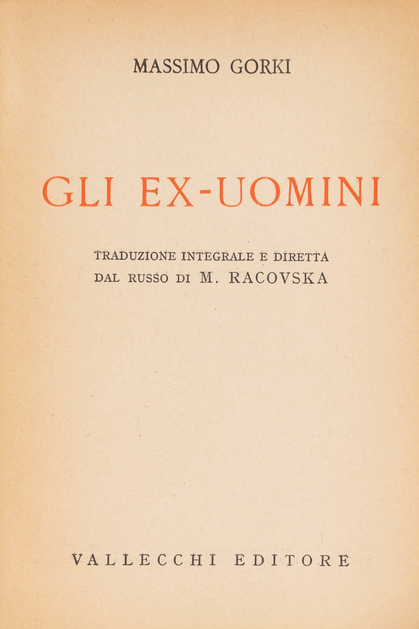 Torino, Einaudi, 1955. Traduzione di Fernanda Pivano con testo integrale a fronte. In 8°, brossura. Copertina leggermente brunita, aloni al dorso. § Massimo Gorki, Gli Ex-Uomini. Traduzione integrale e diretta dal russo di M. Racovscka. Firenze, Vallecchi, 1941. Brossura, cm 15.5x10.5. Legatura allentata, difetti al dorso. § Franz Kafka, Lettere a Milena, a cura di Willy Haas con una prefazione di Remo Cantoni, prima edizione. Milano, Mondadori, 1954. In 16°, legatura in cartoncino rigido con sovraccoperta. Strappi alla sovraccoperta.