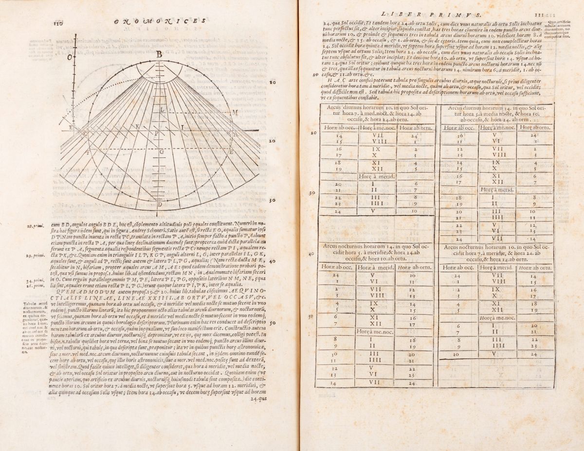 Roma, Francisco Zanetti, 1581. Frontespizio entro cornice architettonica calcografica, numerosi diagrammi nel testo, frontespizio rifoderato, lieve gora d'acqua al margine bianco inferiore delle prime carte, leggere fioriture e arrossature, leggera brunitura su alcuni fascicoli, più intensa su poche carte, rari piccoli aloni, piccolo foro di tarlo al margine inferiore bianco da N6 a 2H4, fascicolo Z6 montato capovolto, qualche piccolo strappo al margine bianco esterno di poche carte, mancanti 3D6, 3H1 e 3H8, 3G6 parzialmente staccata rinforzi al margine interno di 3H2 e 3H7, angolo inferiore esterno dell'ultimo fascicolo sciupato, qualche foro all'ultima carta, legatura di epoca successiva in mezza pelle con autore e titolo impressi in oro al dorso liscio con fregi, lievi difetti.