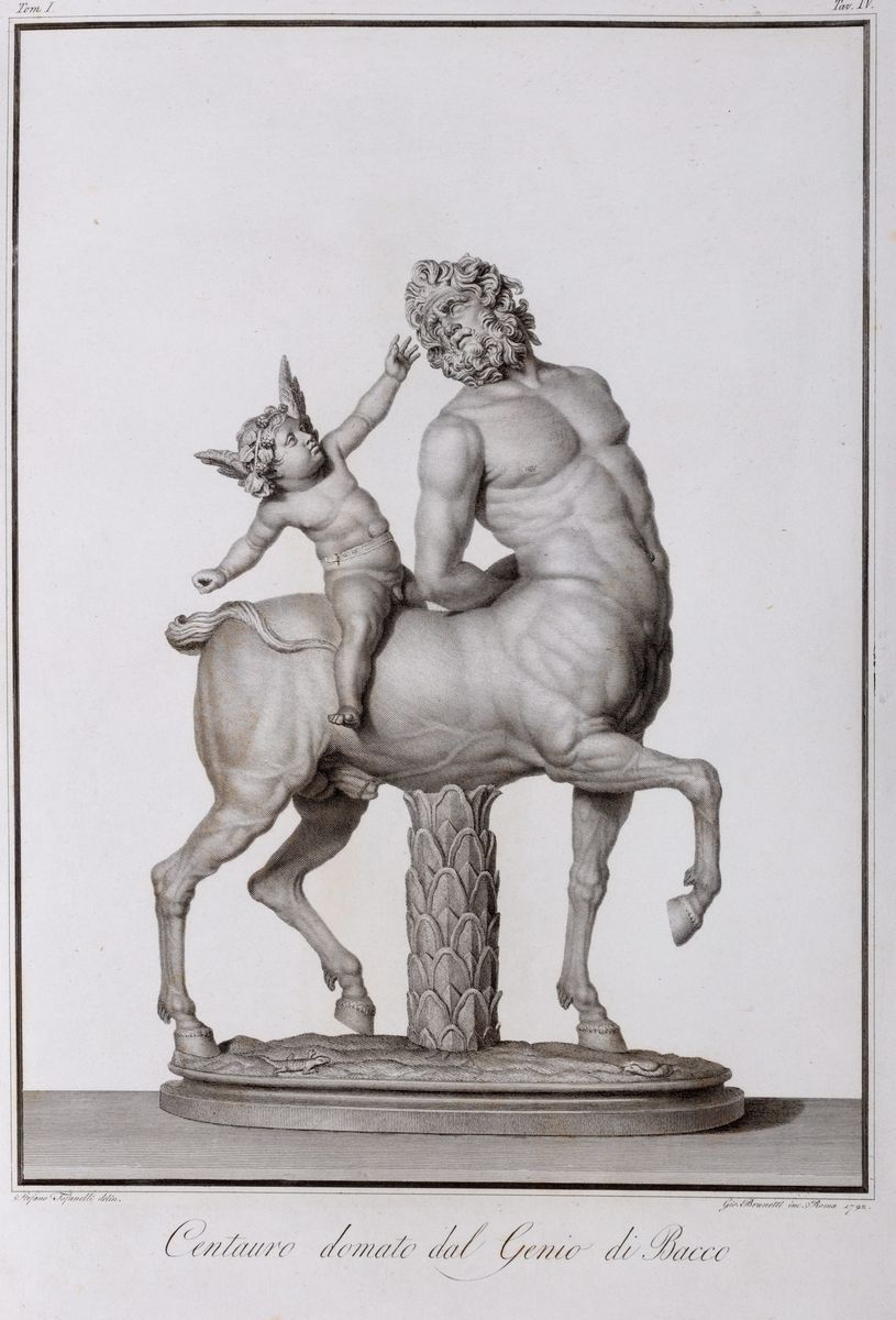 Roma, Stamperia de Romanis, 1821. In 2° imperiale. Solo tomo I. Pagine IV, [2], 110, antiporta allegorica figurata incisa in rame da Pietro Fontana su disegno di Agostino Tofanelli, seguono 48 tavole a piena pagina numerate I - XLIX, a maggior parte su disegno di Agostino e Stefano Tofanelli e Bernardino Nocchi, ed incisi da G. Ottaviani, Bettelini, Vitali, ed altri, fioriture sparse, qualche alone di umido e brunitura leggera, senza legatura.