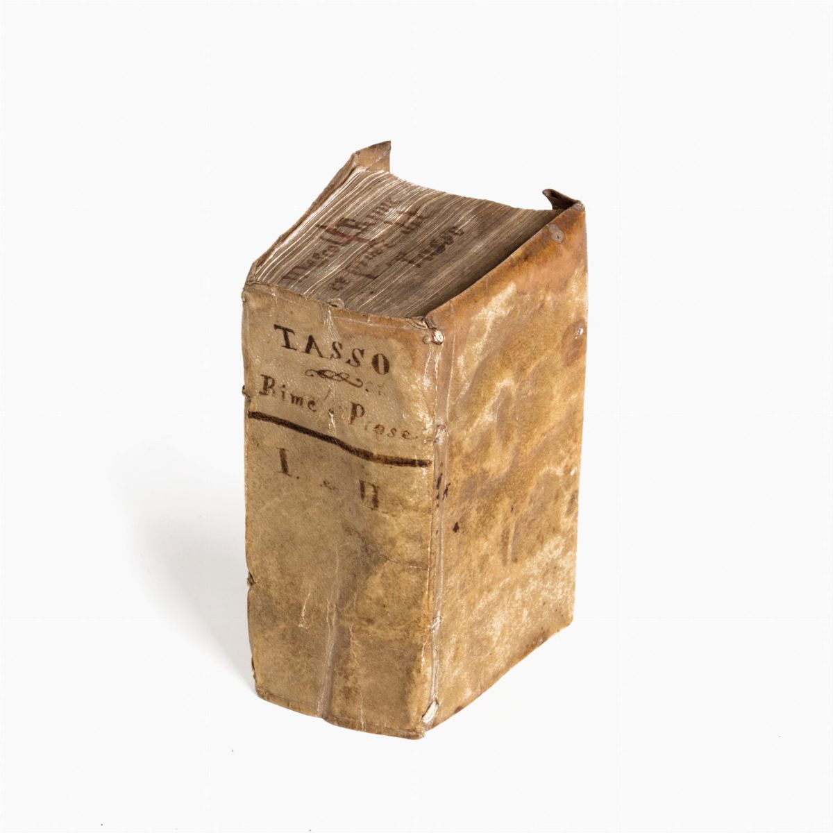 Come quasi tutti i canzonieri del Cinquecento, anche quello tassiano è debitore nei confronti di Petrarca: alle liriche d'amore s'alternano quelle encomiastiche, d'occasione e religiose, con la solita varietà di metri, sonetti, canzoni, ottave, madrigali. Questa edizione è la prima aldina illustrata da vignette silografate; ogni parte ha un dedicatario differente, e i canti dei vari poemi portano due Argomenti, in versi e in prosa. Terza edizione in assoluto delle Rime tassiane, pubblicate la prima volta da Aldo il Giovane nel 1581. Renouard,7 p. 233: “En imprimant cette nouvelle édition, un peu plus ample que celle de 1582, on en disposa les differentes parties de manière à pouvoir aussi les vendre séparément.. Elle paroit faite avec soin, et n’est pas commune”; Adams,II,p. 261; Brunet,V, 664; Graesse,VII, 32. Delle rime, et prose del s. Torquato Tasso, 1583
