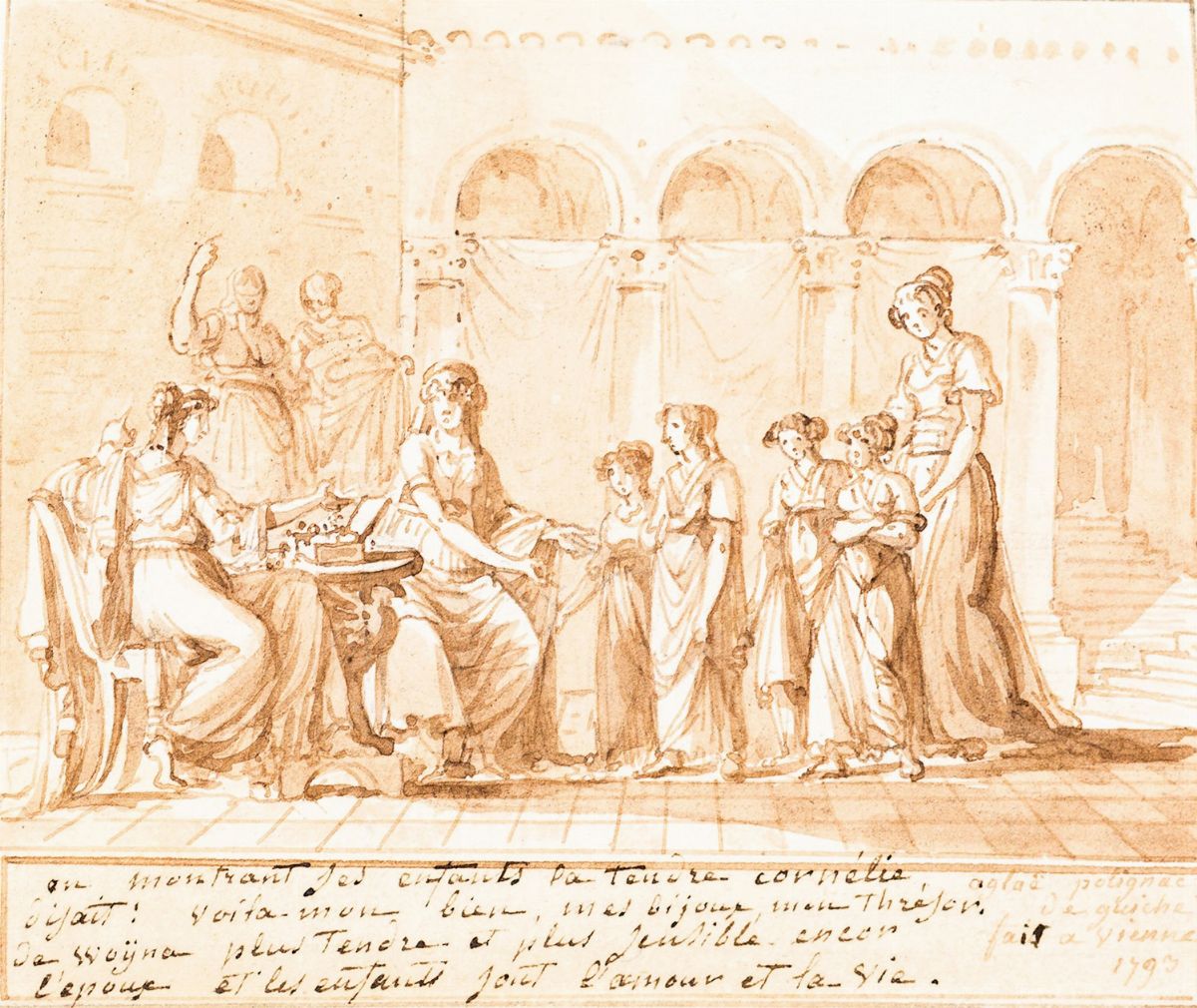 Album amicorum in formato da viaggio probabilmente della Contessa Teresa di Woyna nel quale i suoi amici appartenenti alla nobiltà dell’epoca lasciano liriche e disegni. Interessanti l’acquerello con quattro donne in un interno con al verso i nomi delle nobildonne ritratte (contessa di Woyna, Madame quello firmato dalla duchessa Aglaé de Polignac de Guiche. Album, 1792