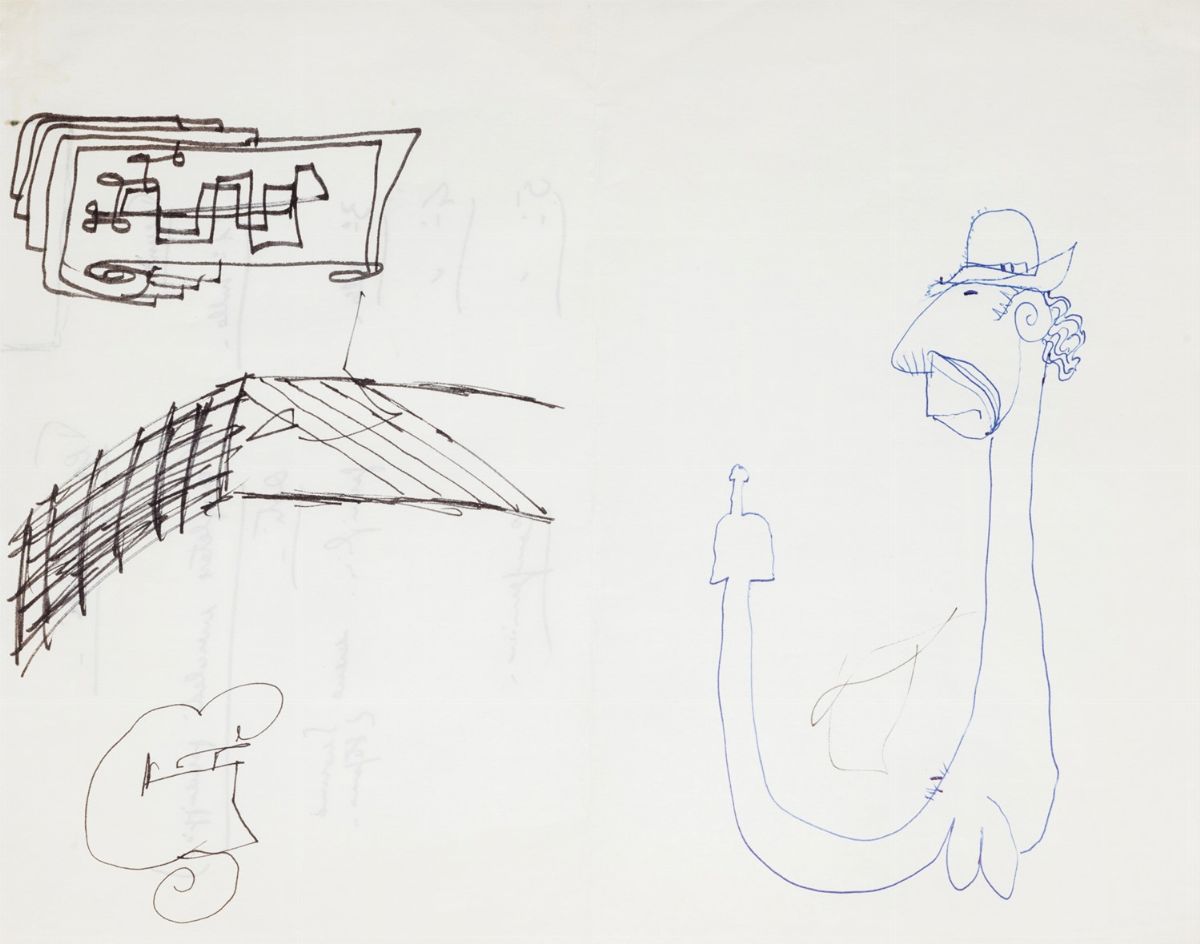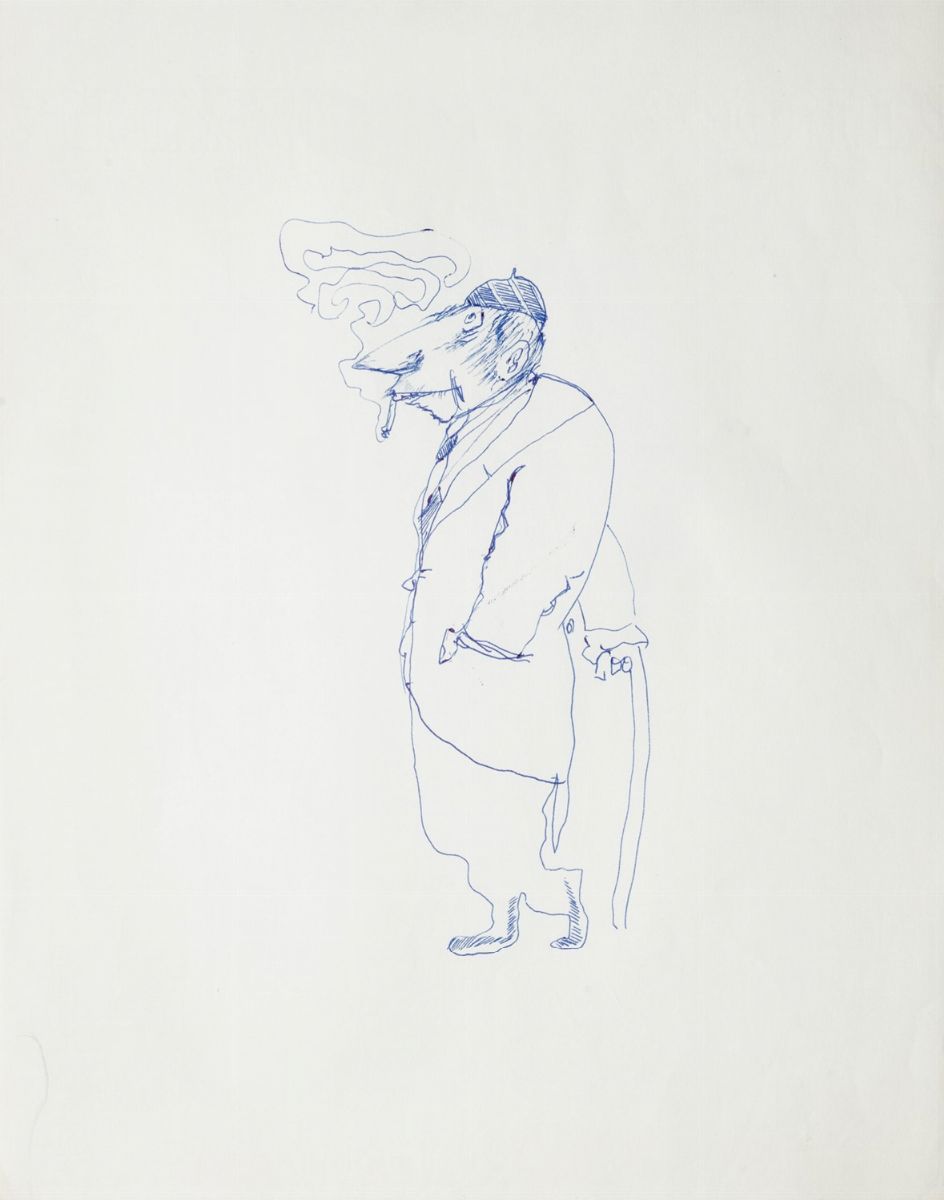 Serie di tre caricature/disegni a inchiostro blu e nero, una ritrae l'attore Silvio Bagolini, che con Fellini farà diversi film, misure 280 x 220 mm.