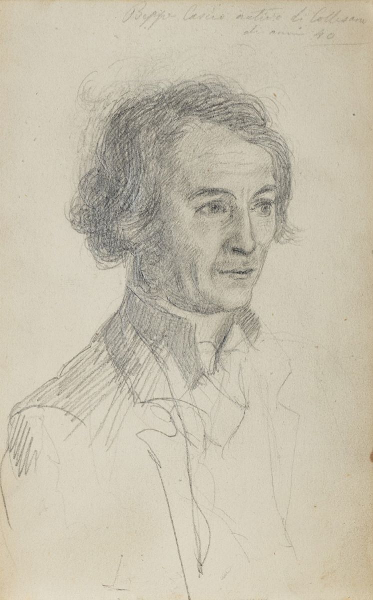 Giuseppina Turrisi Colonna (Palermo 1822 - 1848) ebbe una sofisticata educazione, studiò sotto la guida di Giuseppe Borghi realizzando dapprima degli inni sacri di ispirazione manzoniana, ma poi guardando a Foscolo e Leopardi. Nonostante gli slanci generosi e appassionati i risultati delle sue poesie rimasero di scarso valore artistico. Nel manoscritto rimangono le testimonianze dei suoi autori preferiti: trascrive brani di Byron, Orazio, Foscolo, Dante, Cicerone. I brani letterari sono intervallati da osservazioni personali, ricordi delle giornate passate a cavallo, appunti sulla vita di Aristotele, su Napoleone,osservazioni sui dialetti greci in Sicilia, su opere d'arte, pensieri sulla morte. Non mancano le sue poesie, accanto alle quali si incontra talvolta l'appunto sulla pubblicazione, e in fine una lista dei sui libri - classici italiani,inglesi, greci e latini -, suddivisi per scaffali. Tre pagine sono strappate: dato che la carta seguente parla di libertà che guida i popoli, si può immaginare che il suo documentato impegno nell'incitare gli italiani alla libertà sia stato ritenuto sconveniente. Il taccuino contenente i suoi ritratti, presente nel lotto, ci mostra la sua curiosità nei confronti del popolo palermitano - Concetta Cardone "di anni 5", Piddu Vitale "di dodici anni palermitano" -, oppure l'interesse che le suscitavano i personaggi che gravitavano attorno alla sua casa - Miss Hear, probabilmente la sua governante - e parenti che la visitavano, come Pietro Aloisio Colonna "disegnato ad vivum mentre suonava il pianoforte". Diario, 1840